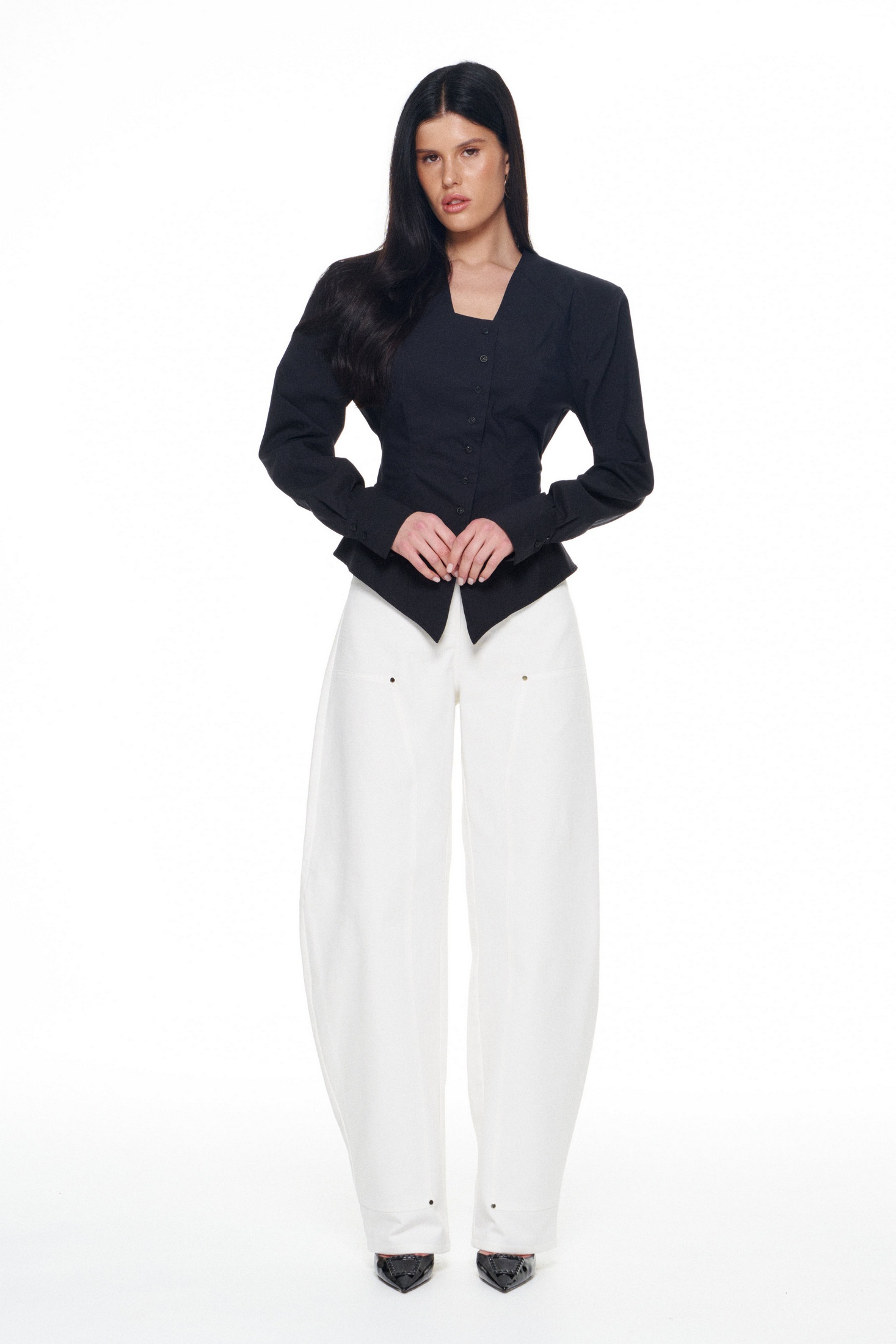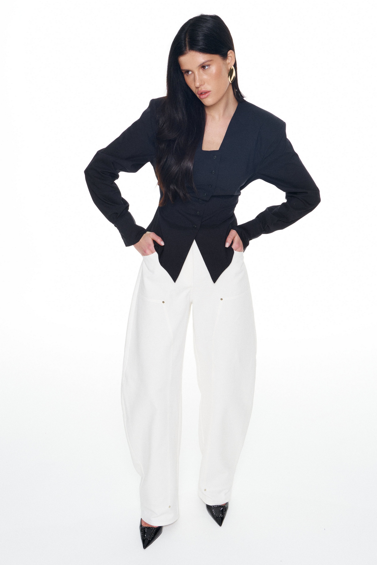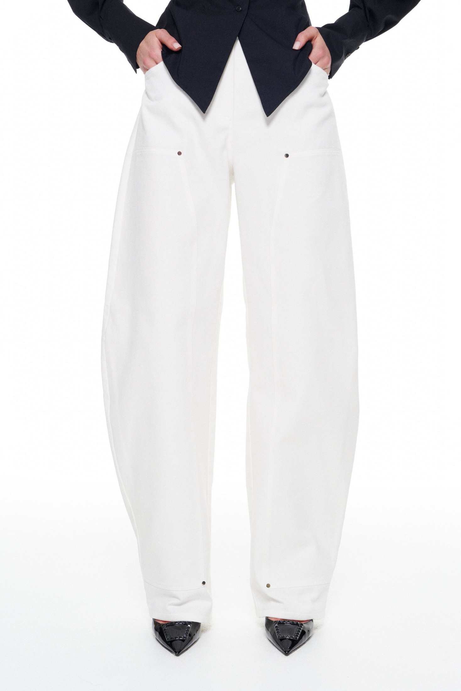 Брюки 3017 белый KaVari — выбор для тех, кто ценит стиль и качество. Коллекция бренда KaVari представляет брюки из плотного денима, подчеркнутые сложными конструктивными членениями. Эта модель с выраженным объемом в области бедер и колен создаёт смелый образ, сужающиеся книзу брюки отлично подойдут для повседневного гардероба. Белый цвет прекрасно сочетается с разными элементами одежды, добавляя свежести вашему образу. Фасон с притачным поясом и шлевками для ремня позволяет использовать аксессуары на ваше усмотрение. Классические передние карманы и накладные задние обеспечивают удобство и функциональность. Застежка на гульфик с молнией и декоративные отделочные строчки по всем швам делают эту модель стильной и практичной, идеально подходящей для весенне-летнего сезона. Длина брюк по боковому шву 42-44р - 112см 46-50р - 112.5см.