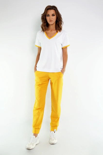 Брюки средней посадки с отделкой в виде канта по деталям переда и карманами в боковых швах. Обработка низа брюк резинка. Ткань френч терри (2-х ниточный футер) с невероятно нежным внутренним слоем, качество Пенье, плотность 235 г.м2