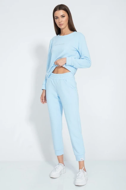 Брюки-джоггеры, укороченные, средней посадки, зауженные к низу с карманами в боковых швах. Обработка низа брюк манжета из основной ткани. Ткань футер 3-х ниточный с внутренним слоем на петельной основе, качество Пенье, плотность 435 г.м2. Максимально качественная ткань с софт текстурой.