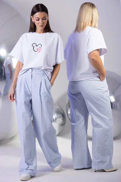 Брюки палаццо свободного кроя с вертикальной полоской — комфорт и элегантность для вашего гардероба
