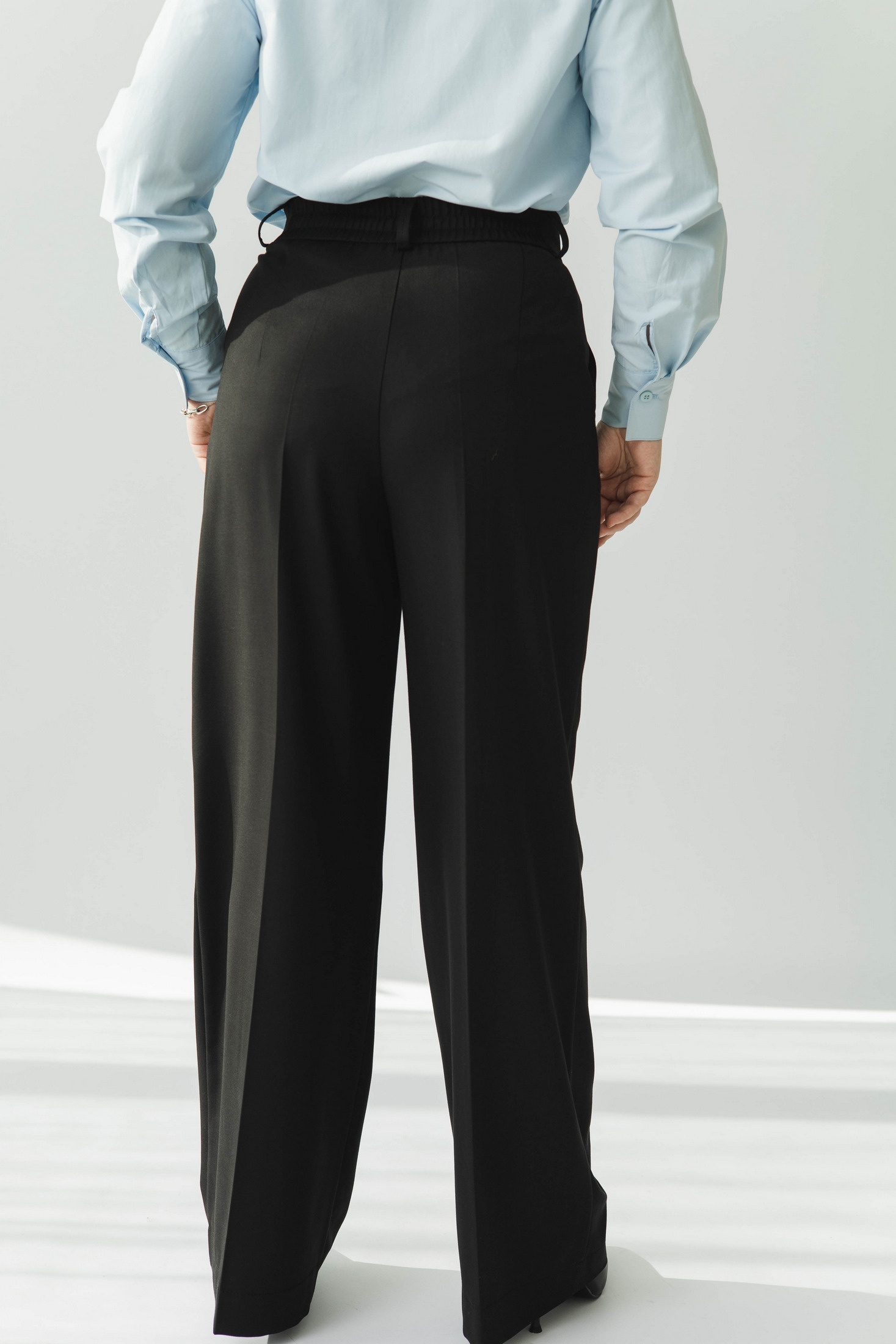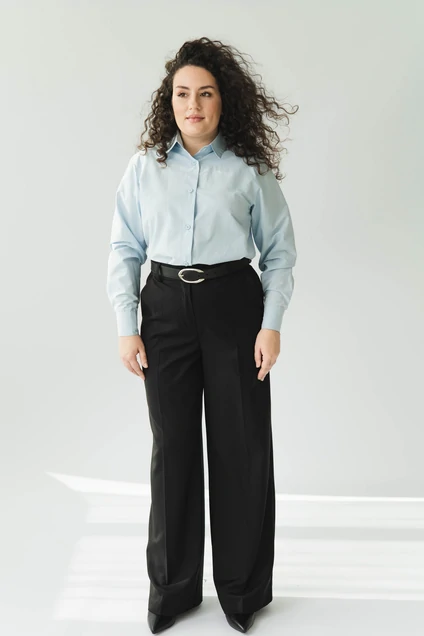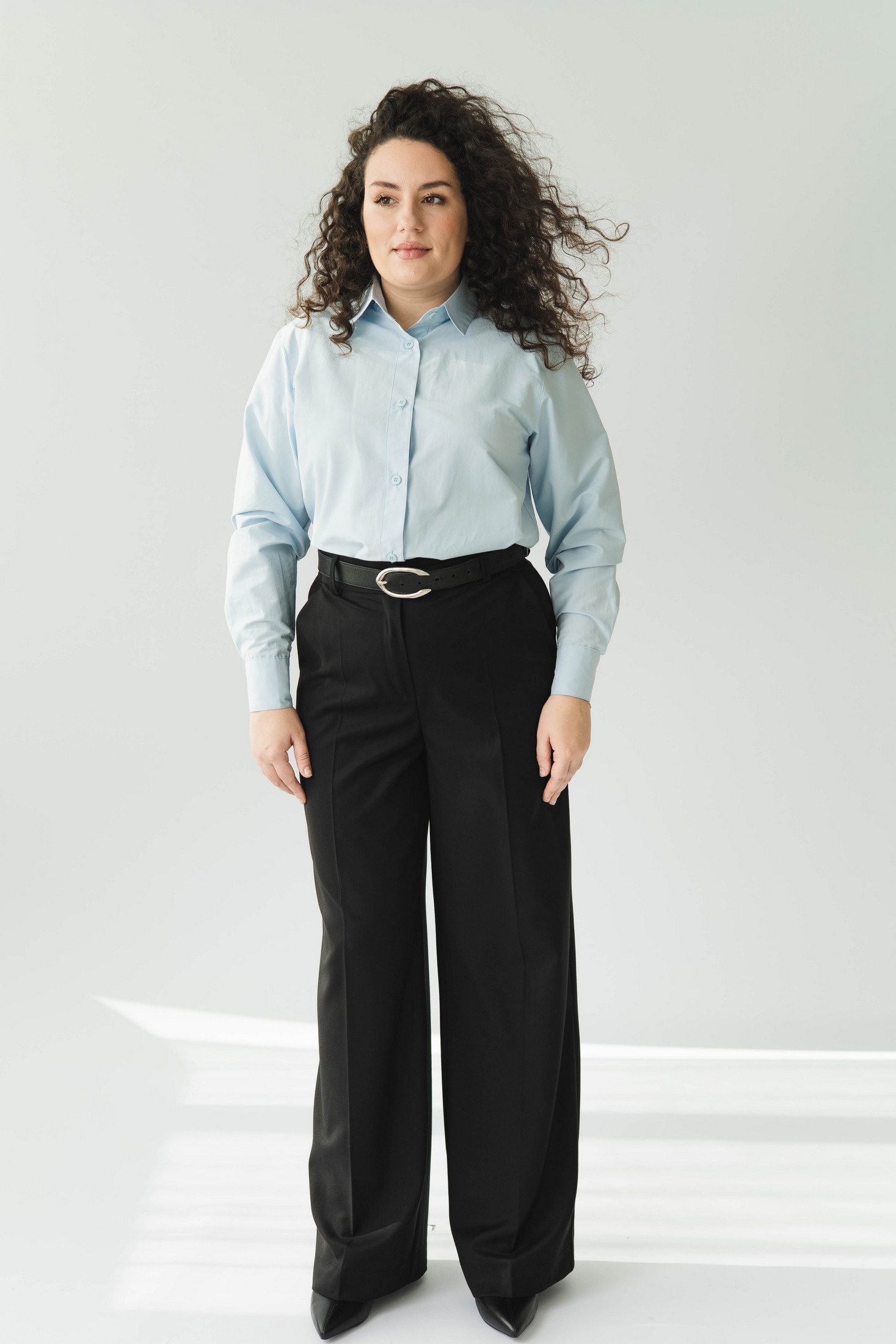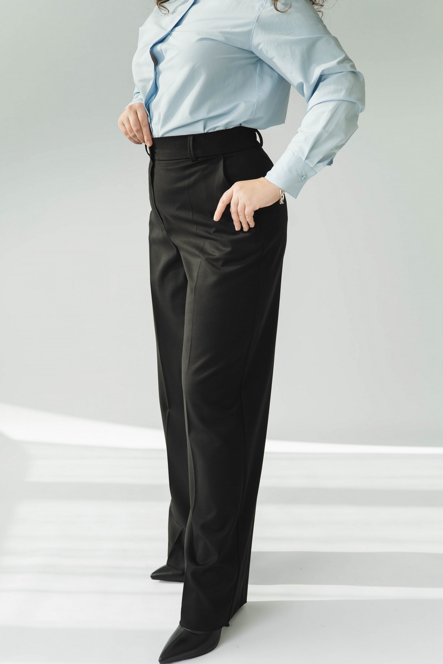 Брюки прямые классические с хорошей посадкой по фигуре. Отлично вытягивают силуэт. Комфортная посадка, благодаря глубоким выточкам по попе и вставленной резинке на задней части пояса. Высокая посадка. Брюки имеют карманы-хулиганы, заутюженную стрелку, шлевки для ремня, застежу на молнию и пуговицу. Брюки пошиты из качественной поливискозы средней плотности. Ткань устойчива к износу, не катается, имеет красивую текстуру и приятная на ощупь.