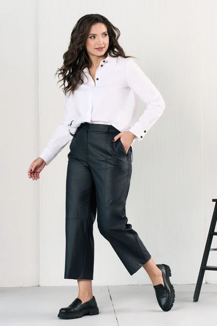 Брюки на поясе с резинкой. Передние половинки с наклонными карманами к боковым швам.