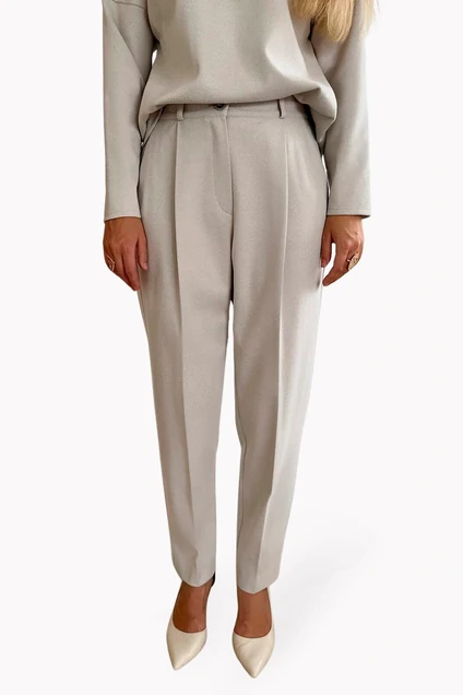 Базовые брюки с высокой посадкой, зауженные к низу и защипами на талии станут основой вашего гардероба. Мягкая и приятная к телу ткань хорошо держит форму и подчеркивает силуэт. В поясе выполнены на резинке сзади, по бокам есть карманы. Дополняйте их нашим джемпером из такого же материала.