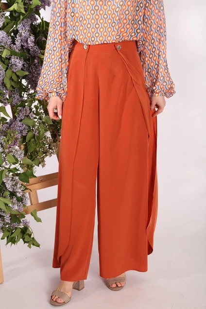 Широкие брюки-кюлоты свободного оригинального кроя с застёжкой на пуговицы. Без карманов. Идеальный вариант для повседневной носки летом.