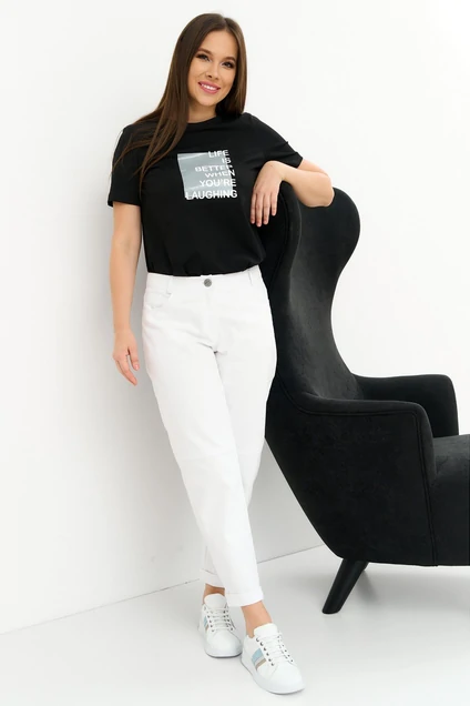 Брюки прямого классического кроя, слегка заужены книзу, с притачным поясом. Посадка средняя. Застежка на молнию и пришивную пуговицу. Дополнены боковыми и задними карманами. Низ брюк с подворотом. Длина брюк по боковому шву 92см.