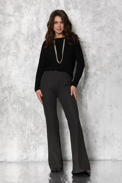 Женские брюки с потайной молнией сбоку – это модный и эффектный элемент гардероба, который привлечет внимание и подчеркнет ваш стиль. Расклешенный крой от колена делает силуэт изящным и женственным, а мерцающий эффект добавляет изделию яркости .