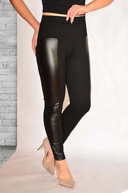 Леггинсы женские однотонные из трикотажного полотна премиум качества, которое идеально подтягивает ваше тело, скрывает все недостатки фигуры (антицеллюлитный эффект); вставка из эко-кожи на байке, благодаря хорошей эластичности изделие принимает форму тела и не сковывает движения, 100% комфорта. Леггинсы длинные повседневные, спортивные, зауженного к низу покроя, с высокой посадкой, с притачным поясом с резинкой. Задние половинки брюк с отрезной фигурной кокеткой типа push-ap.