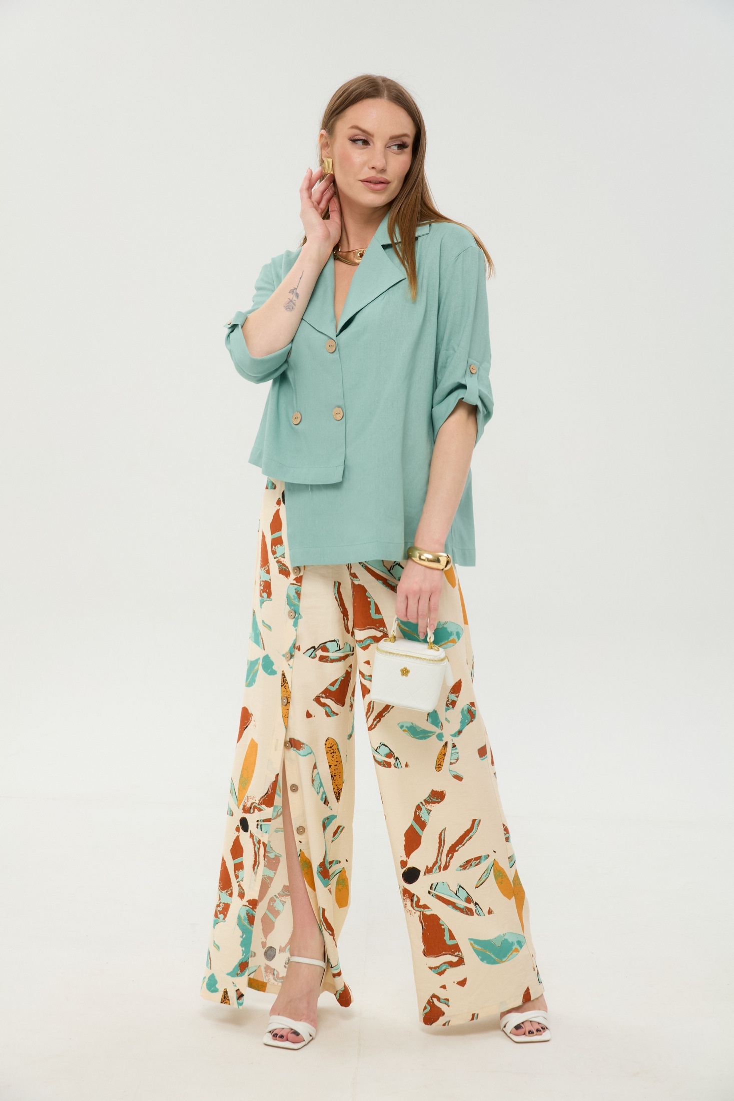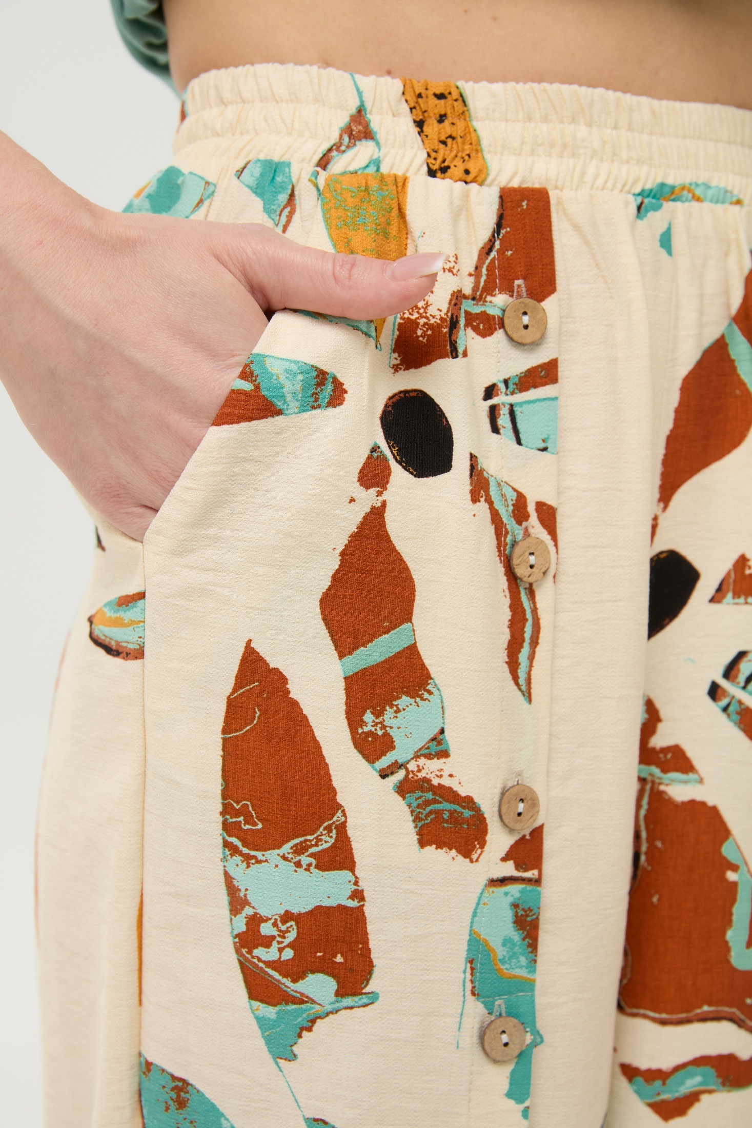 Брюки 977-8 бохо мультиколор NikVa — яркое дополнение к вашему гардеробу. Коллекция бренда NikVa предлагает модель из смеси льна, вискозы и хлопка, что делает их легкими и дышащими. Свободный крой и широкая резинка в поясе обеспечивают комфорт в носке. Декоративная планка с пуговицами добавляет оригинальности. Мультиколорный принт привносит в образ бохо-стиль, идеальный для теплой весны и лета. Брюки подходят для повседневных прогулок и отдыха, в них вы будете чувствовать себя уверенно и стильно.