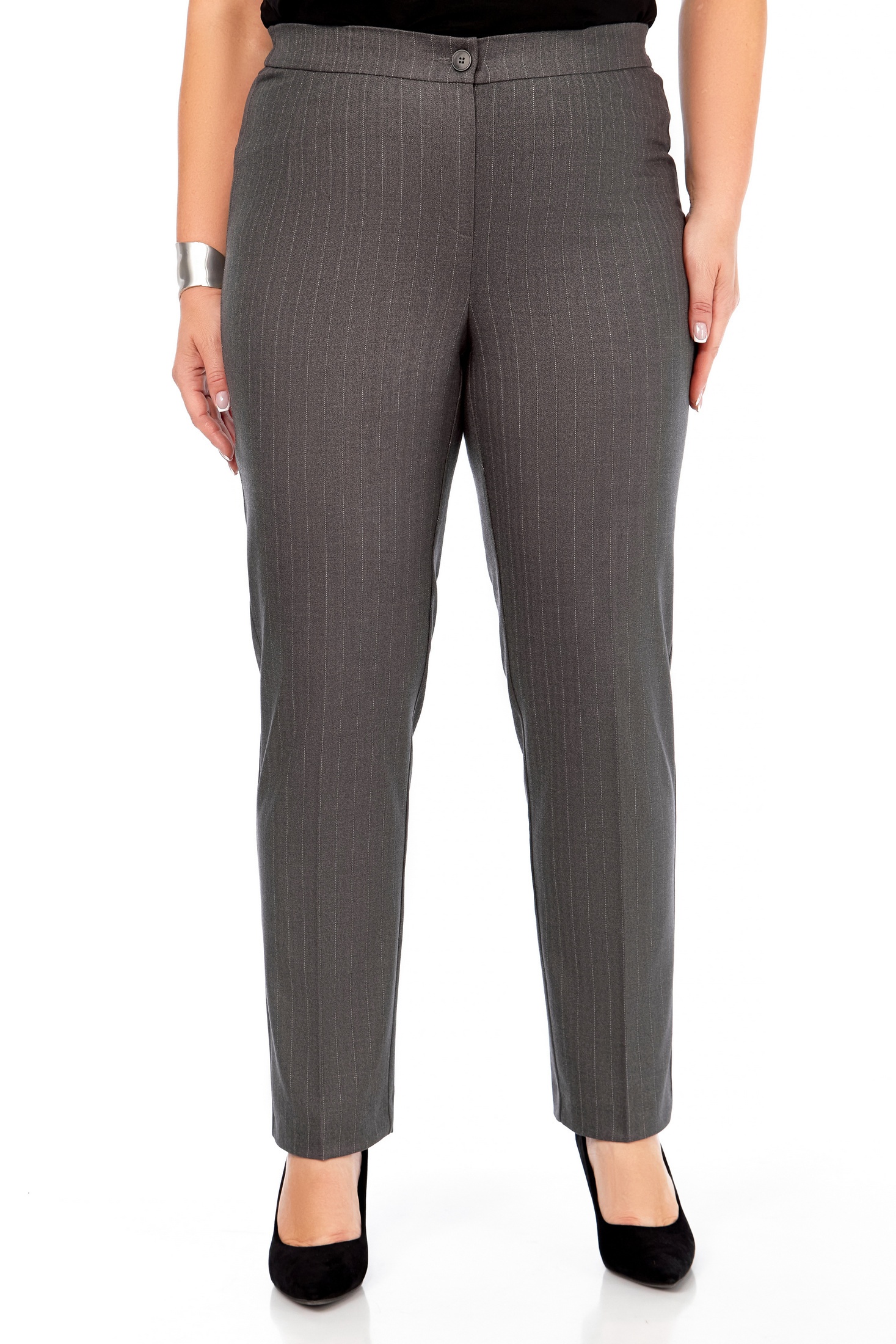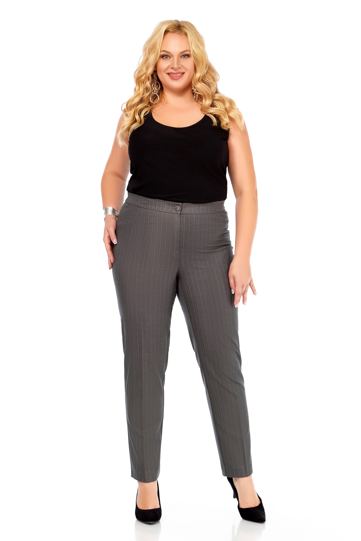 Элегантные серые брюки в тонкую полоску — идеальный выбор для современного гардероба. Модель слегка заужена к низу, обеспечивая аккуратный силуэт, в то время как классический дизайн с застежкой на пуговицу и молнию добавляет функциональности. Пояс с резинкой по спинке гарантирует комфортную посадку. Длина брюк составляет 105 см, что позволяет эффектно сочетаться как с обувью на каблуке, так и с более низкой подошвой. Вертикальный принт в полоску визуально вытягивает силуэт, делая образ более стройным и элегантным.