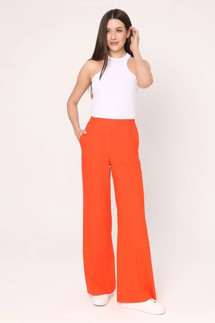 Прямые широкие брюки – удобная одежда, повседневной носки и особых случаев. Стильные брюки для прямые по силуэту. Пояс, дополненном резинкой, что очень удобно. В области боковых швов располагаются прорезные карманы. Отлично сочетается с блузками, футболками, топами, майками, жакетами. Данные брюки пошиты из льняной ткани. Льняная ткань обладает гигроскопичностью, воздухопроницаемостью и подойдёт для жарких дней. Заказывайте летние брюки больших размеров, чтобы пополнить свой сезонный гардероб практичной вещью.