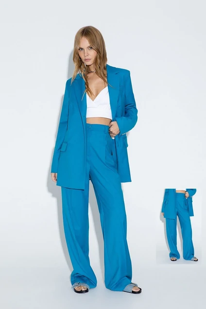 Текстильные брюки-палаццо с высокой посадкой. Детали: высокая посадка, широкие и длинные брюки, притачной пояс со шлевками, передние половины с небольшими застроченными мягкими складками и заутюженными стрелками, застежка на молнию и пуговицу, боковые карманы