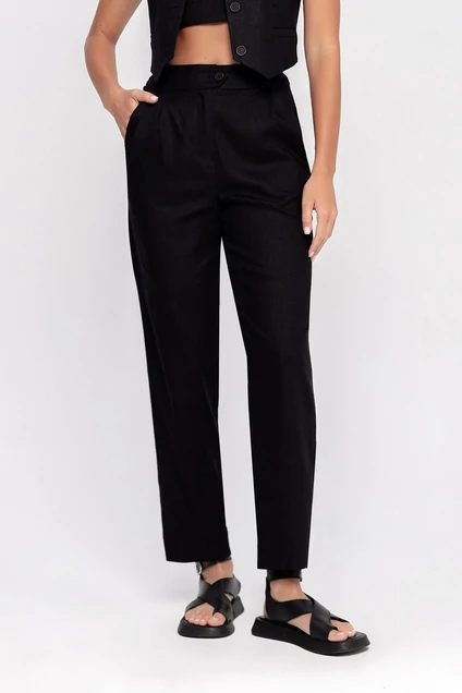 Брюки со складками из смесового льна
