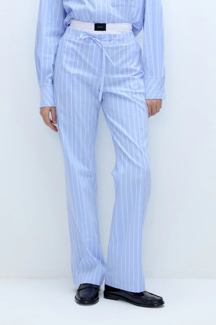 Хлопковые прямые брюки в пижамном стиле.