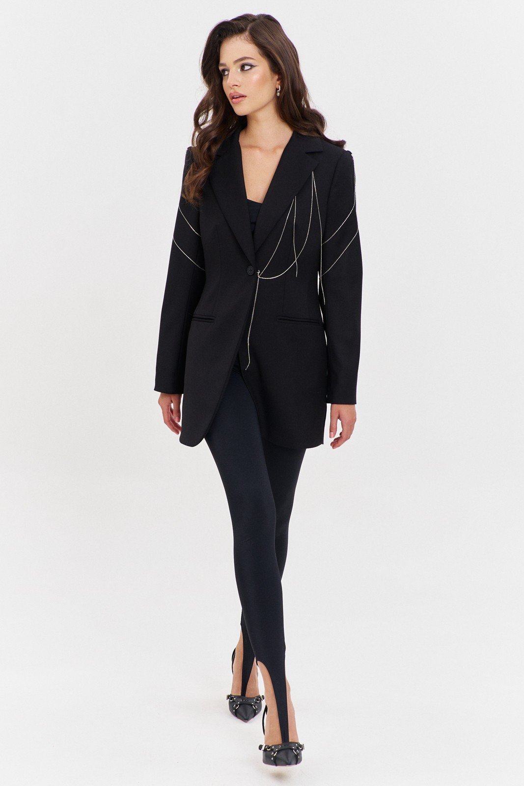 Леггинсы чёрного цвета, созданные для создания эффектного и утончённого образа. Модель с высокой посадкой, дополнена удобной резинкой на талии, обеспечивая идеальный комфорт и поддержку. Леггинсы облегающего силуэта идеально облегают фигуру, демонстрируя ее изящество. Длина до щиколотки делает их идеальными для сочетания как с высокими каблуками, так и с другой обувью на плоской подошве. Особый акцент на них делают штрипки по низу, добавляя изделию дополнительную изюминку и подчеркивая стройность ног. Эти леггинсы станут отличным выбором для создания эффектных городских и вечерних look'ов.