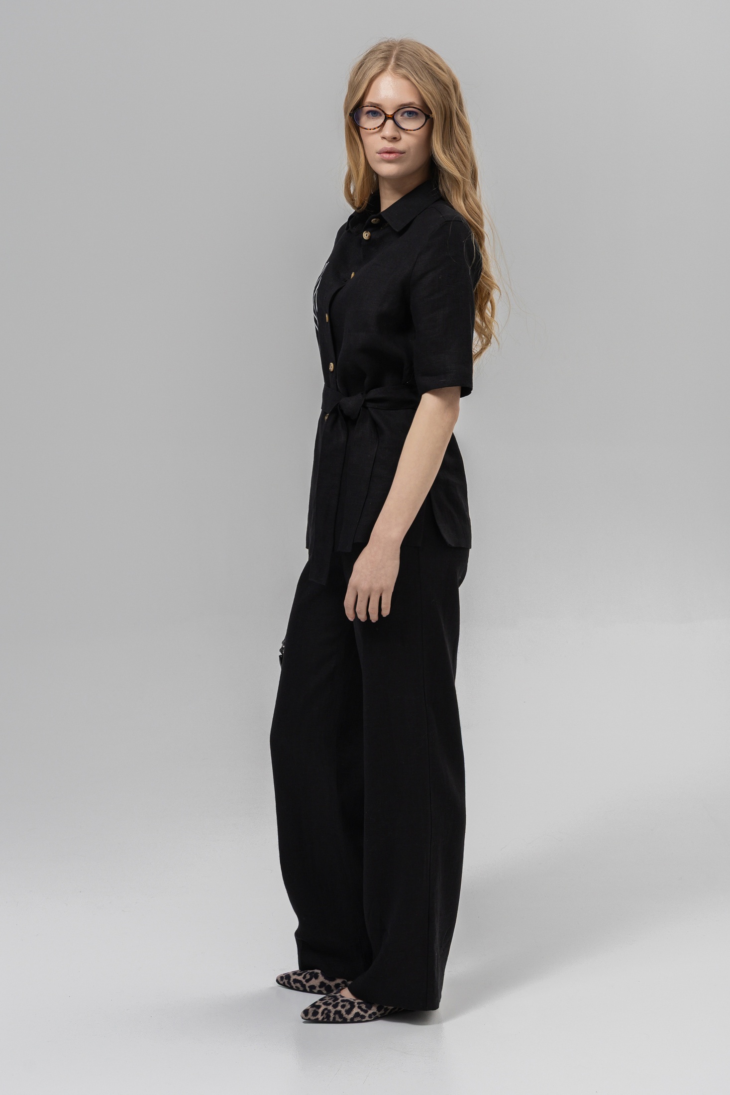 Брюки РТ0151-ЛЕ4 черный Romgil представляют собой классическое сочетание стиля и комфорта. Коллекция бренда Romgil использует 100% лён, что обеспечивает легкость и дыхание материала, идеальные для весенних и летних сезонов. Расклешенный от бедра силуэт подчеркивает фигуру и визуально удлиняет ноги, делая их более стройными. Универсальный черный цвет и свободный крой позволяют использовать их в повседневных и праздничных образах. Эти брюки легко комбинируются с различными блузками и жакетами, что делает их незаменимым элементом вашего гардероба.