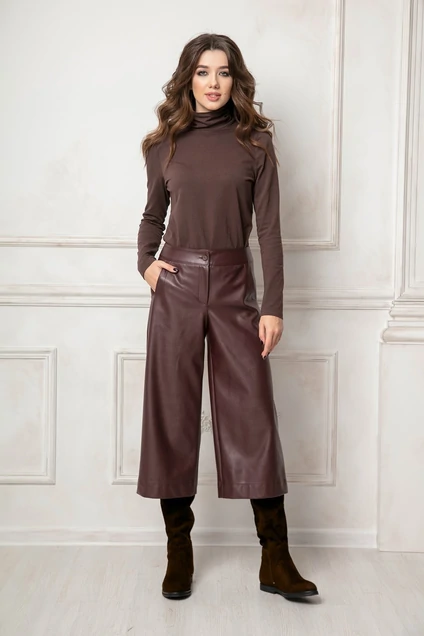 Актуальные фасоны, типы, расцветки делают из моделей нарядные, повседневные, деловые и трендовые вещи. Образ, который точно не оставит Вас равнодушным. Брюки прямого силуэта, длиной чуть ниже середины икры. По талии притачной пояс-обтачка. По передним половинам в боковых швах обработаны карманы с наклонным входом. В среднем шве переда обработана застежка на тесьму-«молнию», с гульфиком и откоском. По передней и задней половинке брюк талиевые вытачки.