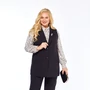 Элегантные прилегающие брюки тёмно-синего цвета из качественной костюмно-плательной ткани. Модель с классической посадкой, спереди застёгивается на молнию для удобства. Дополнительный комфорт обеспечивает пояс с вставками из резинки по бокам. Длина изделия по боковому шву составляет 103 см, что делает брюки идеальным выбором для создания делового образа.