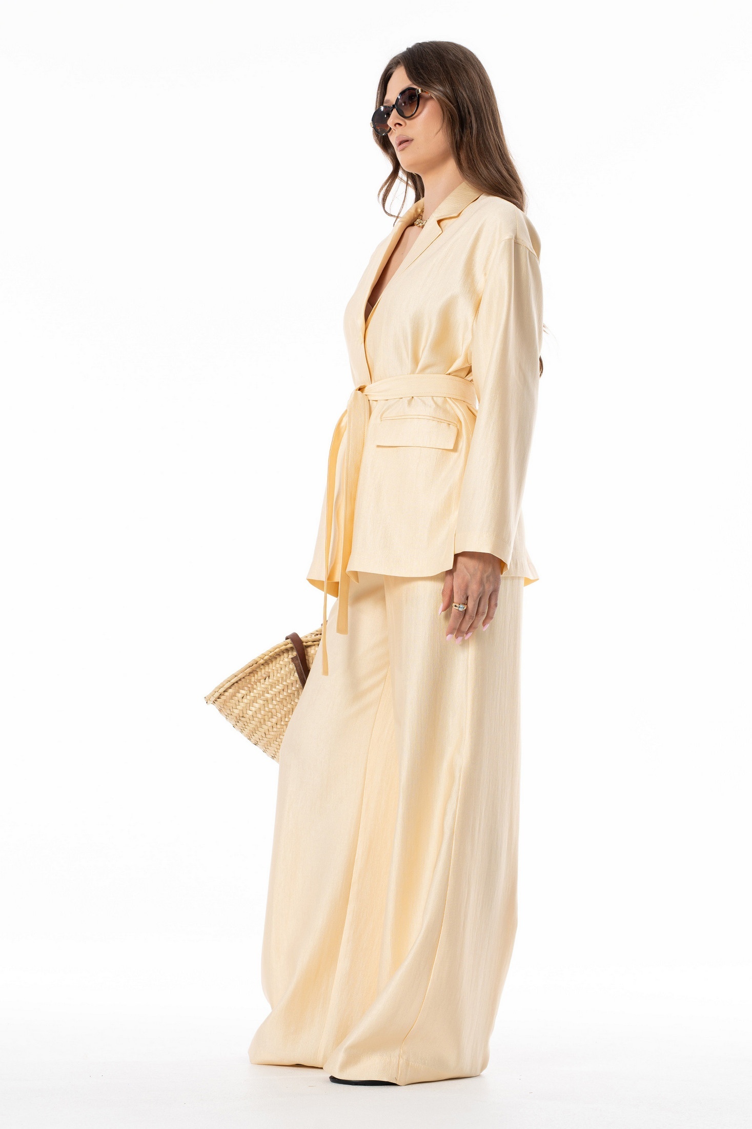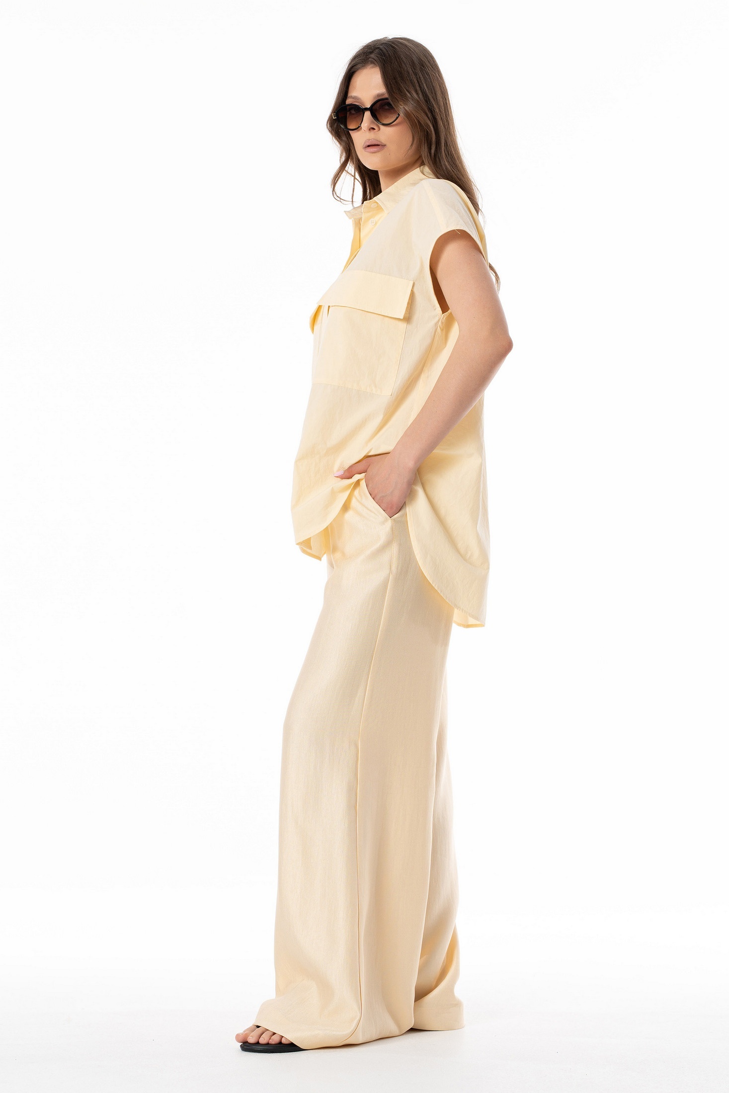 Брюки 3630 желтый SILVERSPICE - это стильное дополнение вашего гардероба. Коллекция бренда SILVERSPICE предлагает вам прямые свободные брюки, которые обеспечат комфорт в любой ситуации. Пояс на резинке гарантирует удобную посадку, а наклонные карманы добавляют практичность. Изготовленные из сочетания вискозы, полиамида и полиэстера, эти брюки подходят для теплых сезонов. Элегантный желтый цвет освежает образ и добавляет яркости. Ширина брюк по боковому шву с поясом составляет 108 см, обеспечивая отличную свободу движений. Идеально подходят для повседневного использования и дополнения стильной блузкой или жакетом.