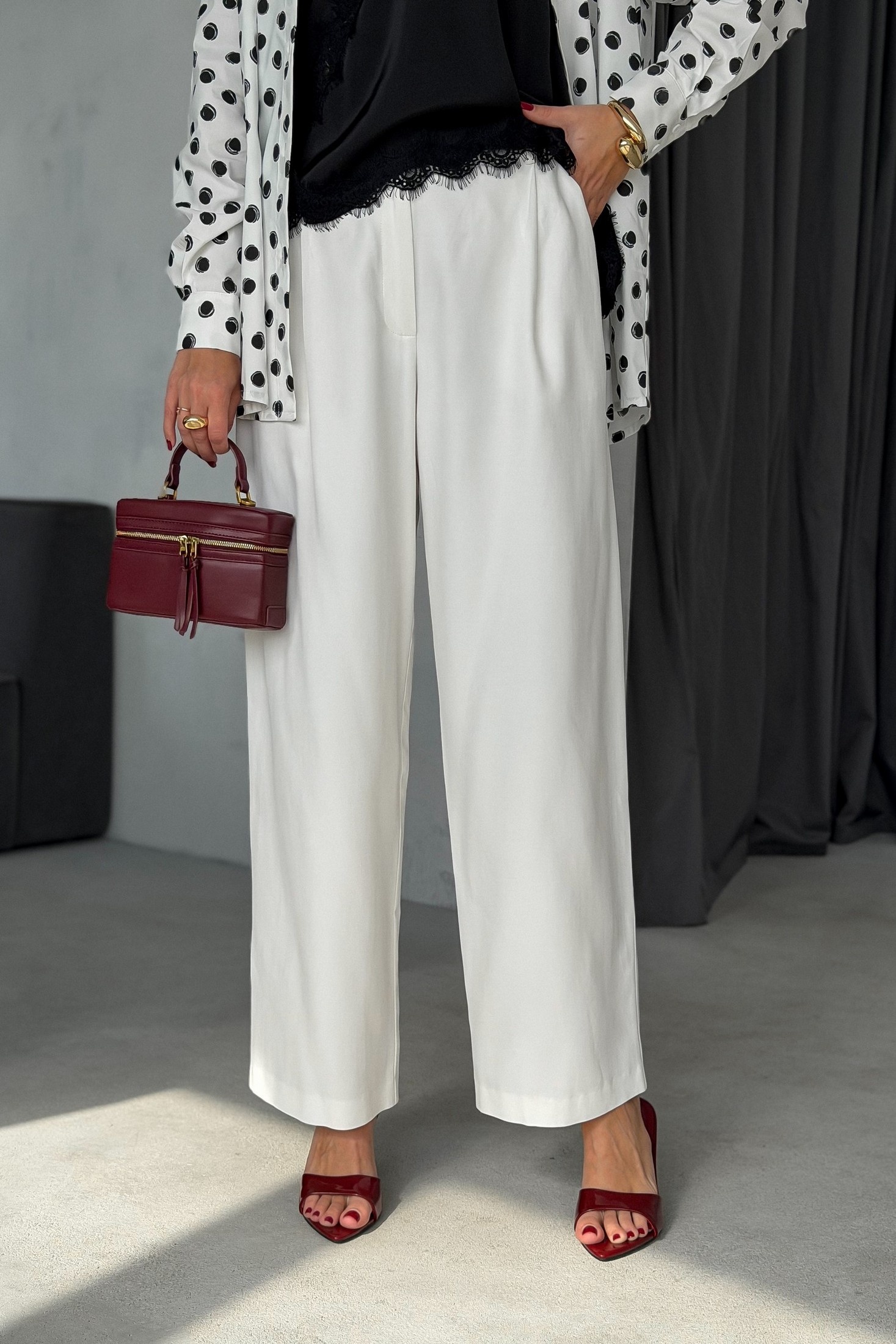 Брюки 393 белый T.N.D. Эти женские брюки из коллекции бренда T.N.D выполнены из 100% вискозы, что делает их легкими и приятными на ощупь. Фасон «бананы» с притачным поясом на резинке и застежкой на молнию обеспечивает комфорт и стильный вид. Брюки отлично подходят для весны и осени и легко комбинируются с различными элементами гардероба, идеальны как для офисных, так и для повседневных образов. Белый цвет добавляет свежести и элегантности, а функциональные карманы и складки на передних полотнищах предлагаются как практичные и модные детали.
