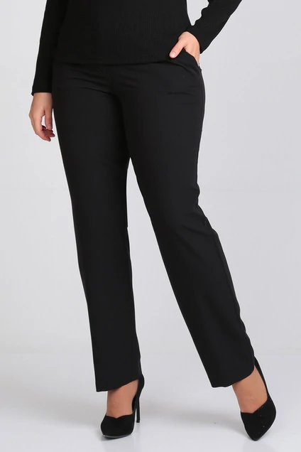 Элегантные классические брюки на притачном поясе. Застёжка на пуговицу по поясу и на тесьму-молнию по гульфику. Спереди боковые наклонные карманы. Длина брюк - 110 см.