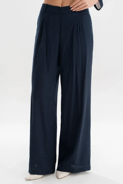 Льняные брюки со складками, тёмно-синие (для высокого роста 176–182 см)