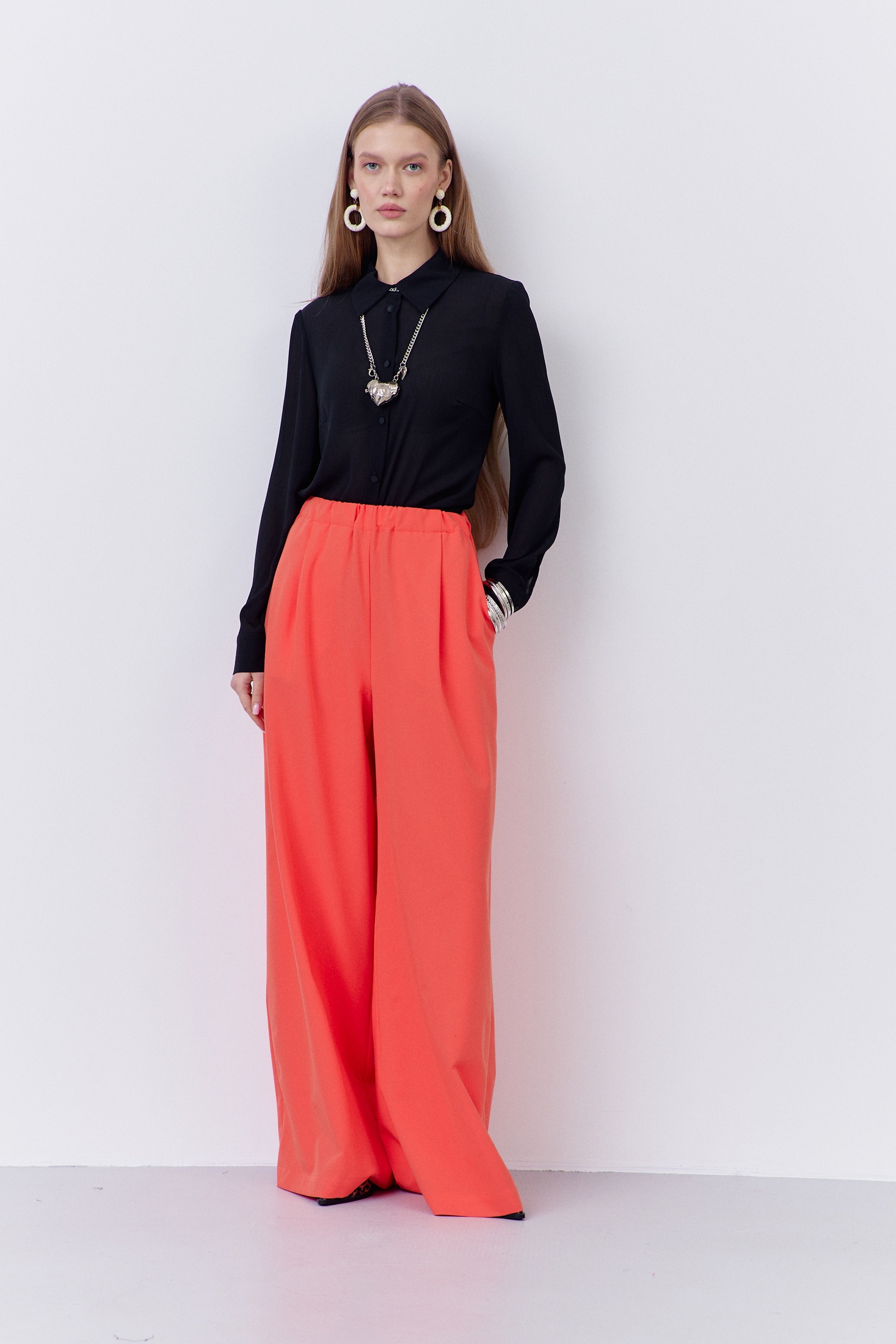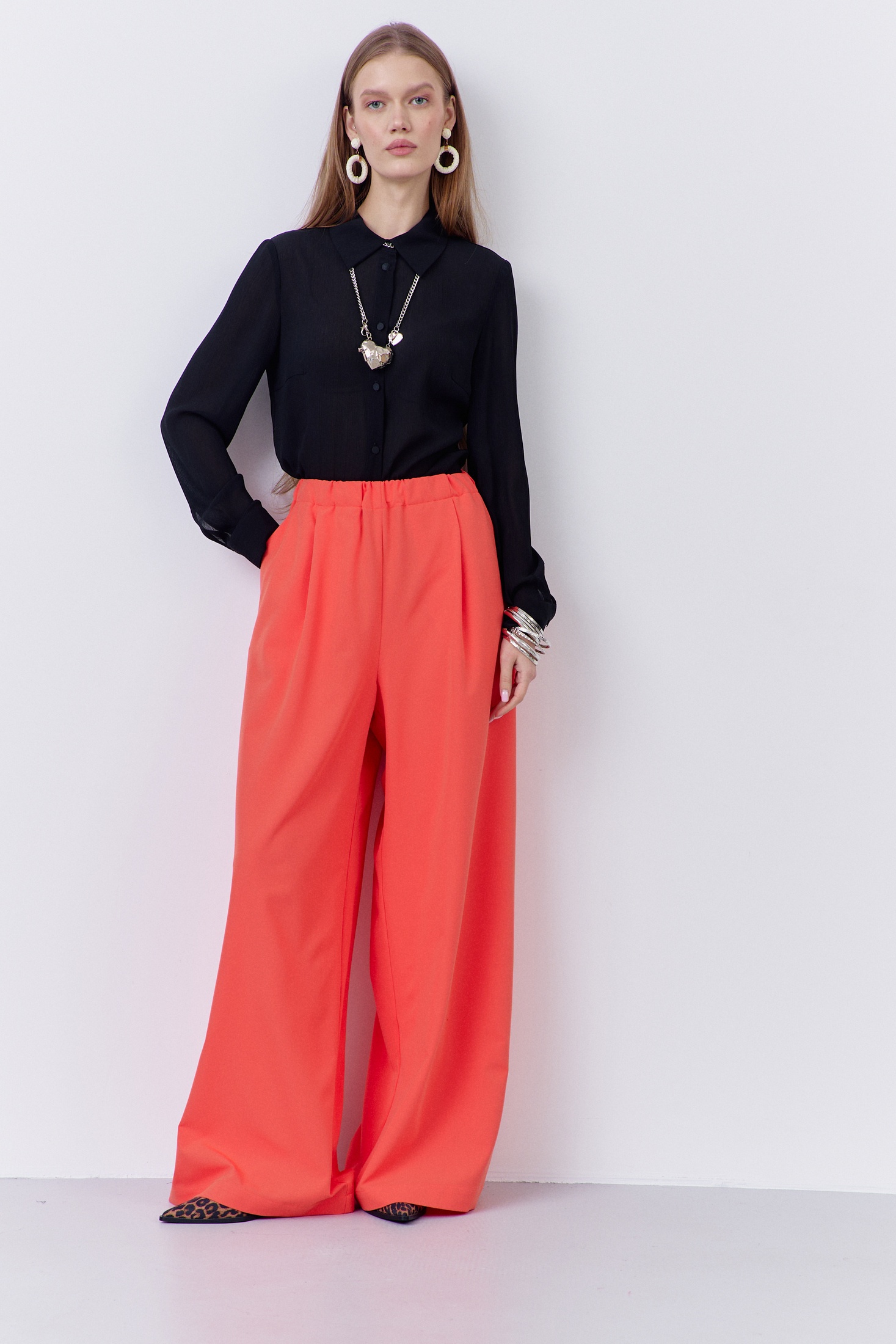 Брюки 2076 оранжевый FLAIM – это женские брюки-палаццо, выполненные из высококачественной плательной ткани. Коллекция бренда FLAIM представляет стильный элемент гардероба, который замечательно подходит для повседневных и офисных образов. Оранжевый цвет добавляет яркости и динамичности вашему стилю. Брюки имеют свободный силуэт и оснащены поясом на резинке, что гарантирует комфорт в носке. В боковых швах предусмотрены удобные карманы. Изделие комбинируется с различными вариантами верхней одежды и обуви. Подходят для ношения в весенне-летний сезон, становясь неотъемлемой частью вашего модного гардероба.