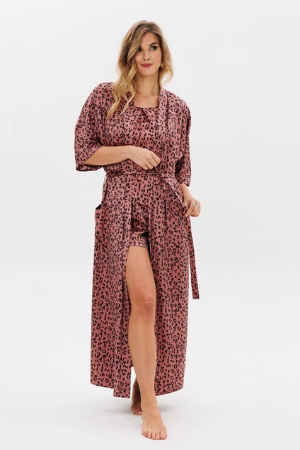 Классический костюм для дома из атласной ткани, состоящий из халата, свободного топа и коротких шортиков - комфортная одежда для сна и отдыха. Халат с запахом, на поясе. По полочке идут накладные карманы. Рукав со спущенным плечом, короткий. В сексуальной ночной пижамке удобно спать, ее можно носить дома кормящим как легкую, не стесняющую движений одежду, надевать на пижамную вечеринку. В свободном топе на тонких регулируемых бретелях со встречной складкой по центру, вставками из сетки по бокам и резинкой по верхней части спинки , и шортиках средней посадки, с резинкой на поясе - будет удобно полным и худеньким женщинам и девушкам - подросткам. Данную модель из нежной ткани можно подарить любимой маме или дочке, коллеге для повседневного ношения на лето. Длина халата 128см, длина рукава- 28. Длина топа по спинке: 34 см. Длина шорт 31 см.