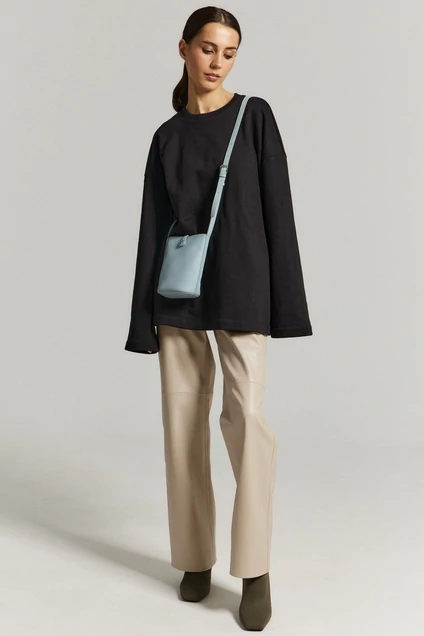 Джемпер прямого свободного кроя, в черном цвете. Овальный вырез горловины. Рукав длинный спущенный. Джемпер идеально подходит для многослойных образов в прохладную погоду и станет незаменимым элементом осеннего гардероба. Модель в едином размере.