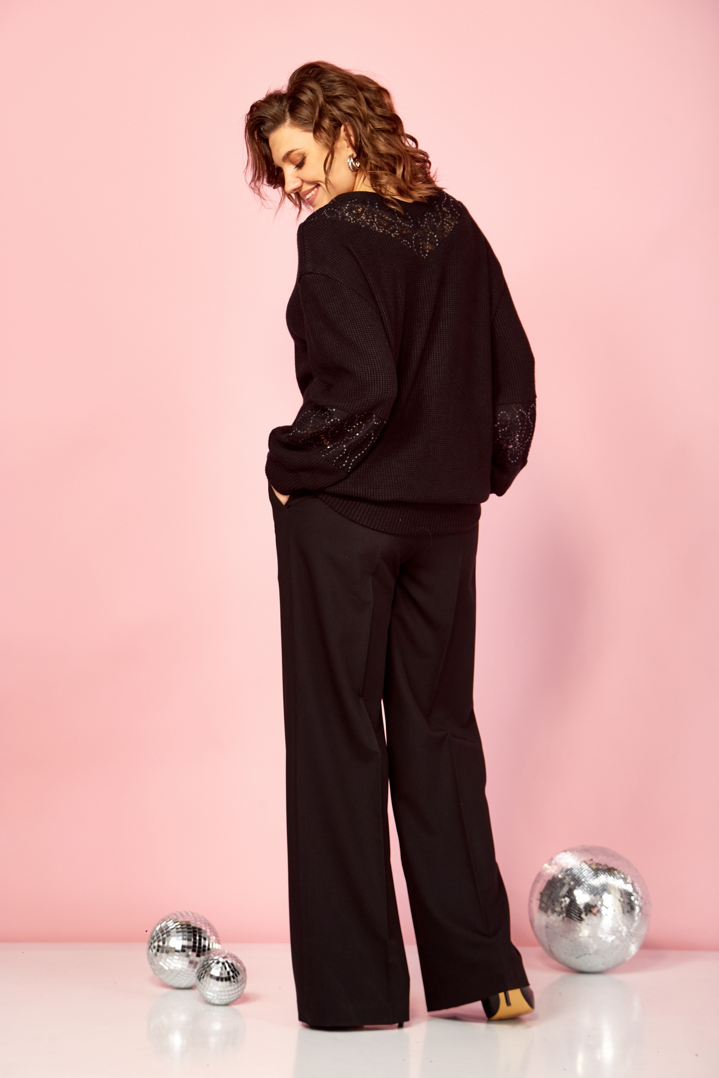 Декоративная отделка из сетки и пайеток делает этот джемпер особенным и привлекательным для тех, кто любит добавлять в свой образ яркие акценты. Сетка добавляет легкости и воздушности, а пайетки — блеска и нарядности, позволяя носить джемпер как в повседневной жизни, так и на особых событиях.