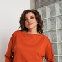 Свитшот свободного силуэта, с V-образным вырезом, обработанным обтачкой, пройма рукава спущена, низ рукава и низ изделия обработаны манжетой из основного материала. Модель выполнена из тактильно приятного трикотажа с содержанием вискозы.