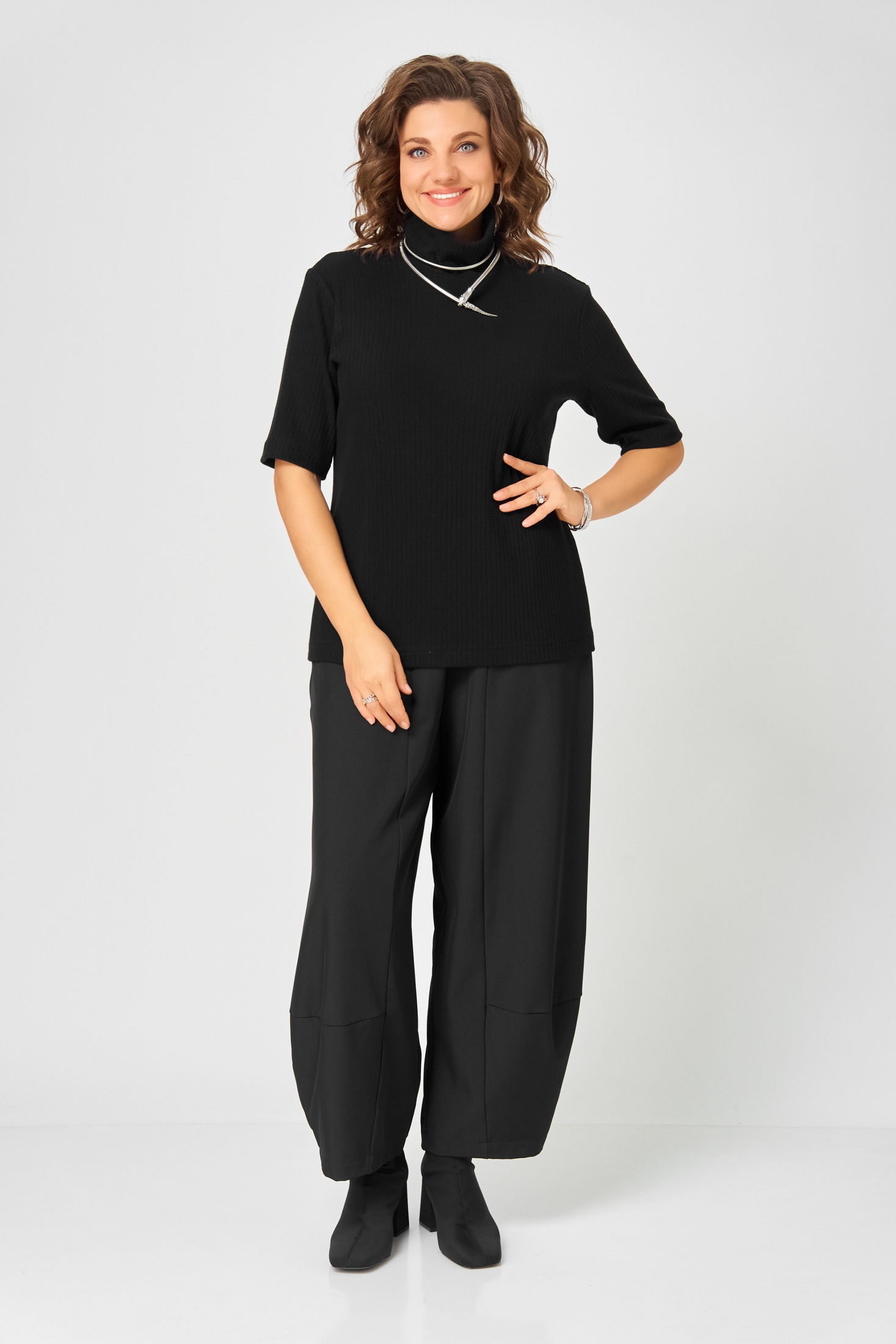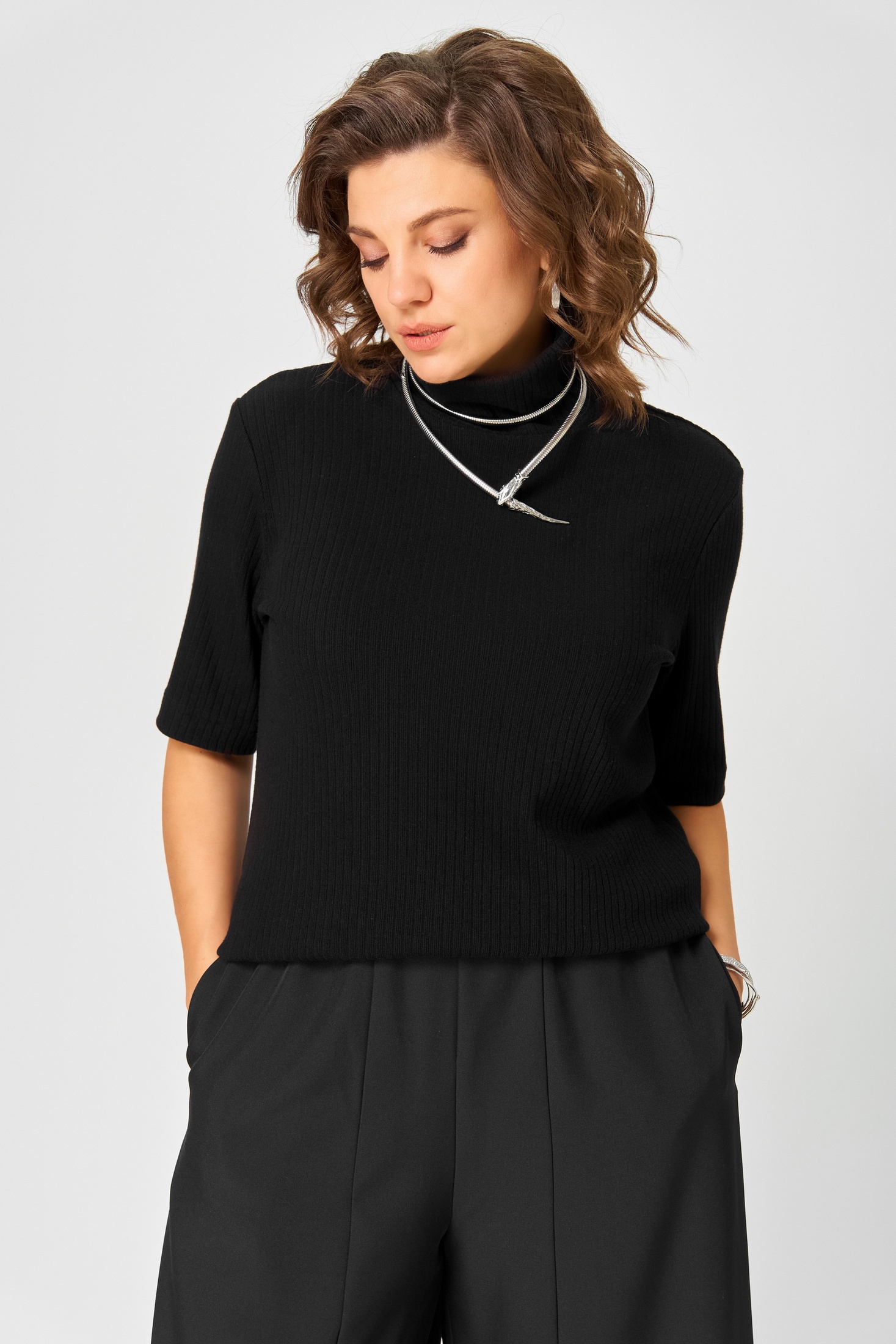 Джемпер – самый популярный базовый предмет гардероба. Благодаря простоте, функциональности и удобству она не выходит из моды. Джемпер с высоким воротом и рукавом 3/4 – удобная, временами не заменимая и модная вещь. Джемпер изготовлен из мягкого трикотажного полотна в “рубчик”. Этот предмет гардероба подходит для женщин и девушек всех возрастов и легко комбинируется с разными вещами.