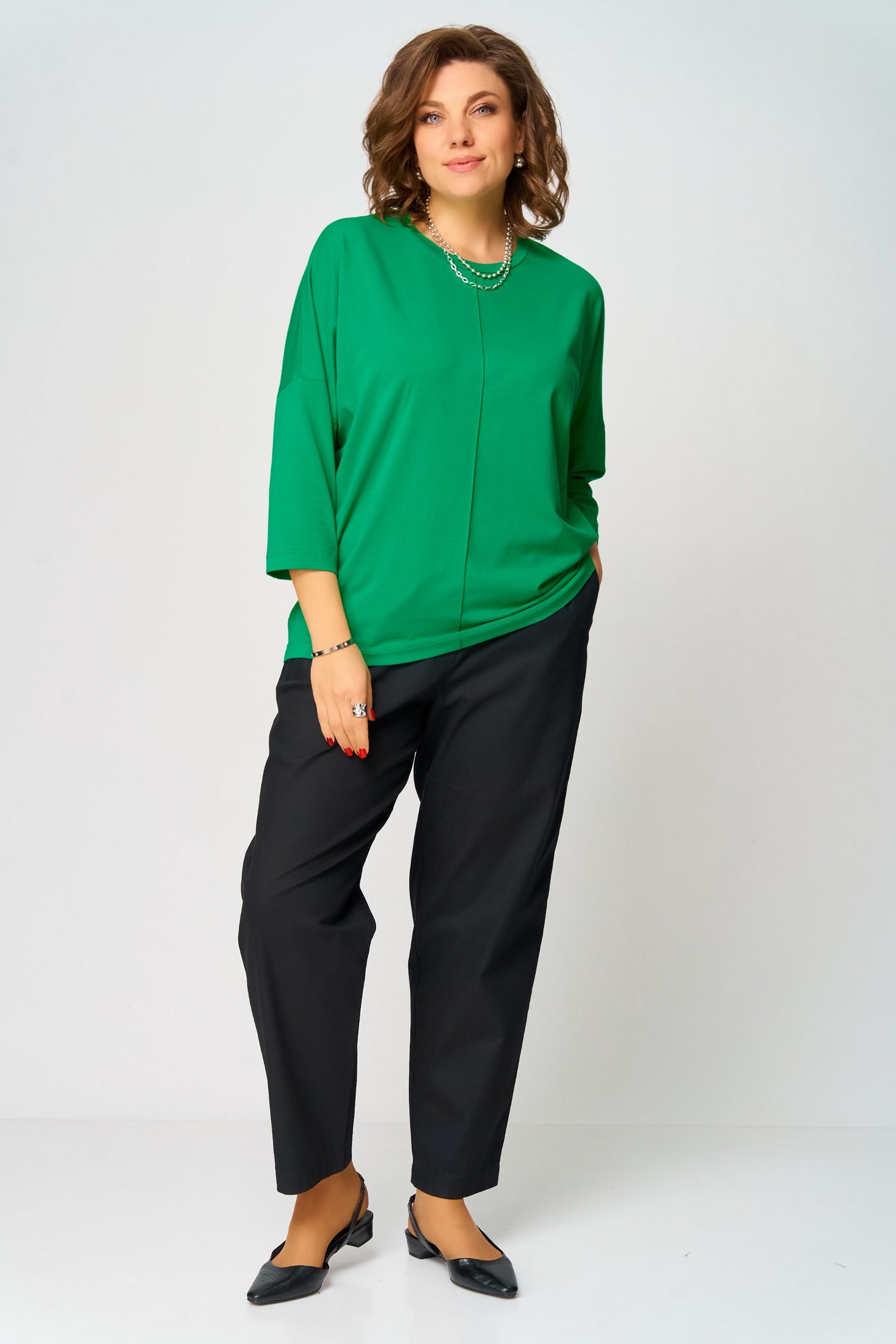 Элегантный джемпер представляет собой идеальное дополнение к любому гардеробу. Этот джемпер свободного кроя выполнен из высококачественного трикотажа PREMIUM класса, что обеспечивает комфорт и долговечность изделия. Особенностью дизайна является декоративный шов по полочке, придающий изделию уникальный вид. Рукав 7/8 добавляет стильности и позволяет акцентировать внимание на аксессуарах. Такой джемпер не только украсит повседневный образ, но и позволит вам выразить свою индивидуальность, став яркой деталью в вашем наряде.