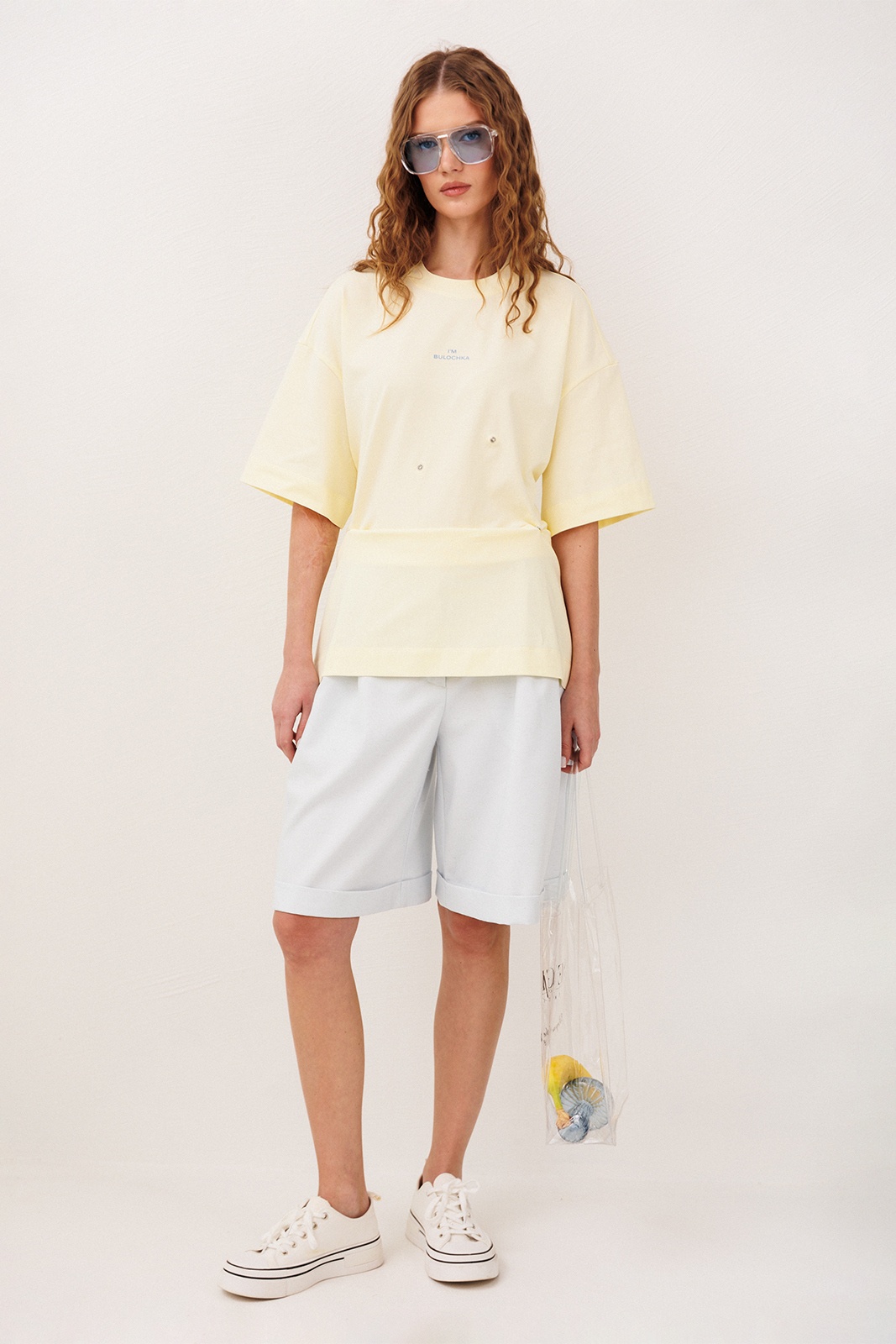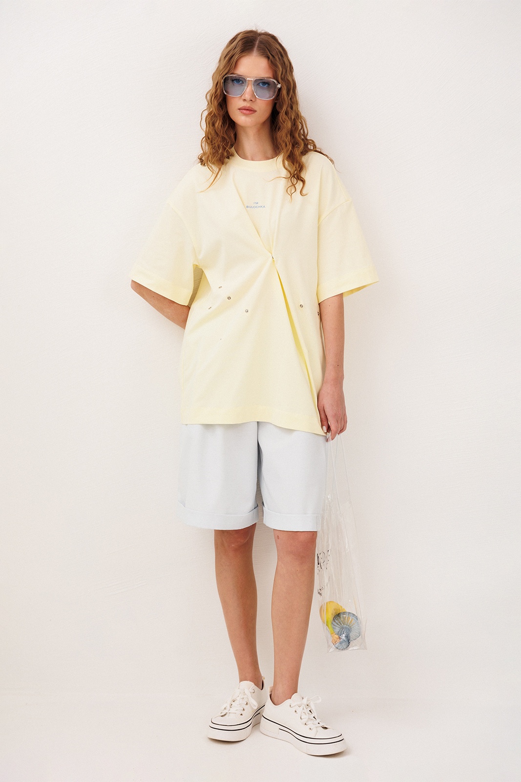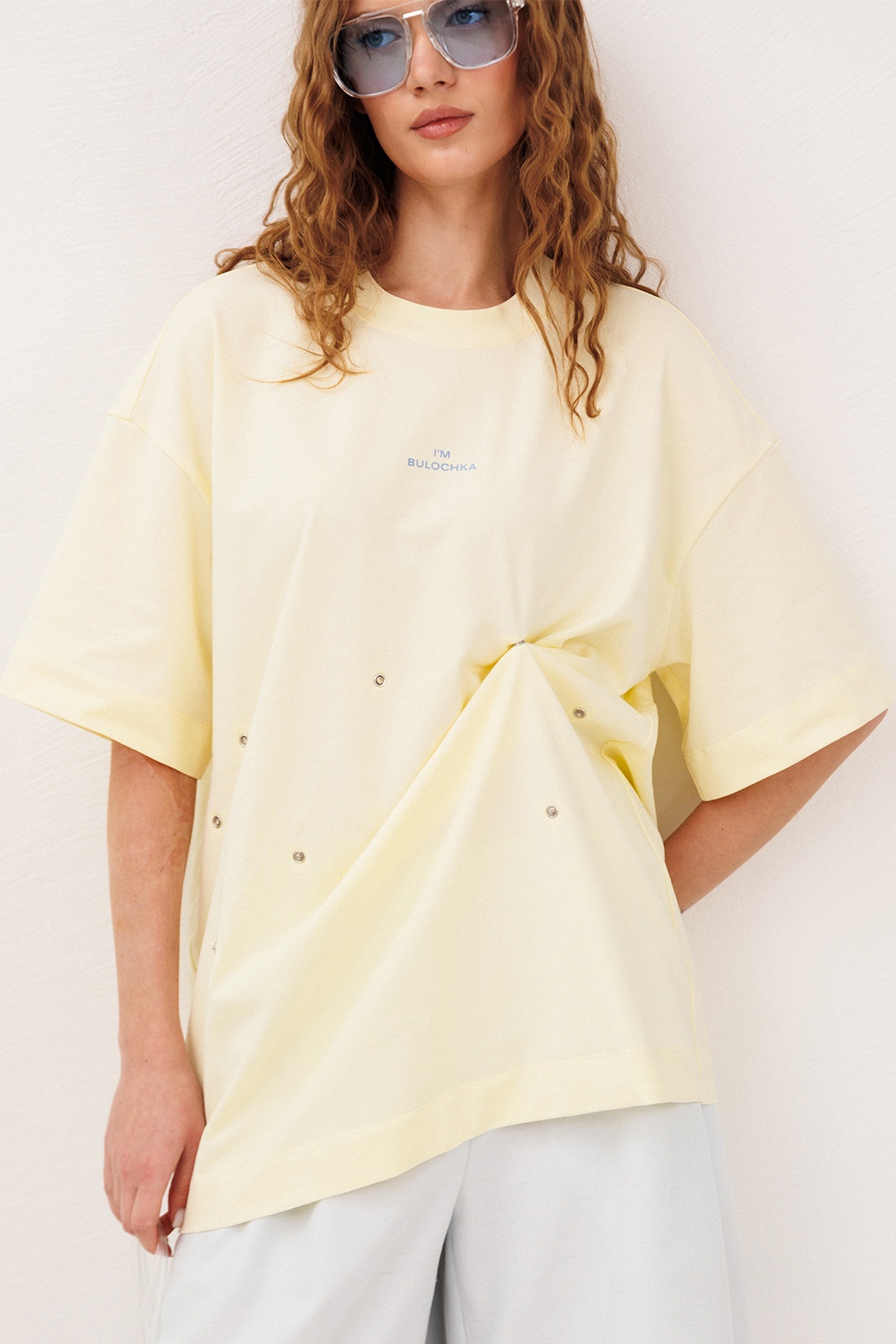 Джемпер 3328 сливочный BUTER — идеальное решение для любого повода. Коллекция бренда BUTER отличается уникальным дизайном, который подчеркивает вашу индивидуальность. Джемпер выполнен из мягкого трикотажного материала с высоким содержанием хлопка, обеспечивая комфорт и дышащие свойства. Легкий сливочный оттенок модели позволяет создать свежий и стильный образ, который подходит для весны и лета. Прямой силуэт с возможностью драпировки и спущенной линией плеча придает изделию современный молодежный вид. Принт 'I'M BULOCHKA' добавляет изюминку в общий стиль джемпера. Наличие кнопок на полочке и спинке позволяет экспериментировать с посадкой, создавая каждый раз новый образ.