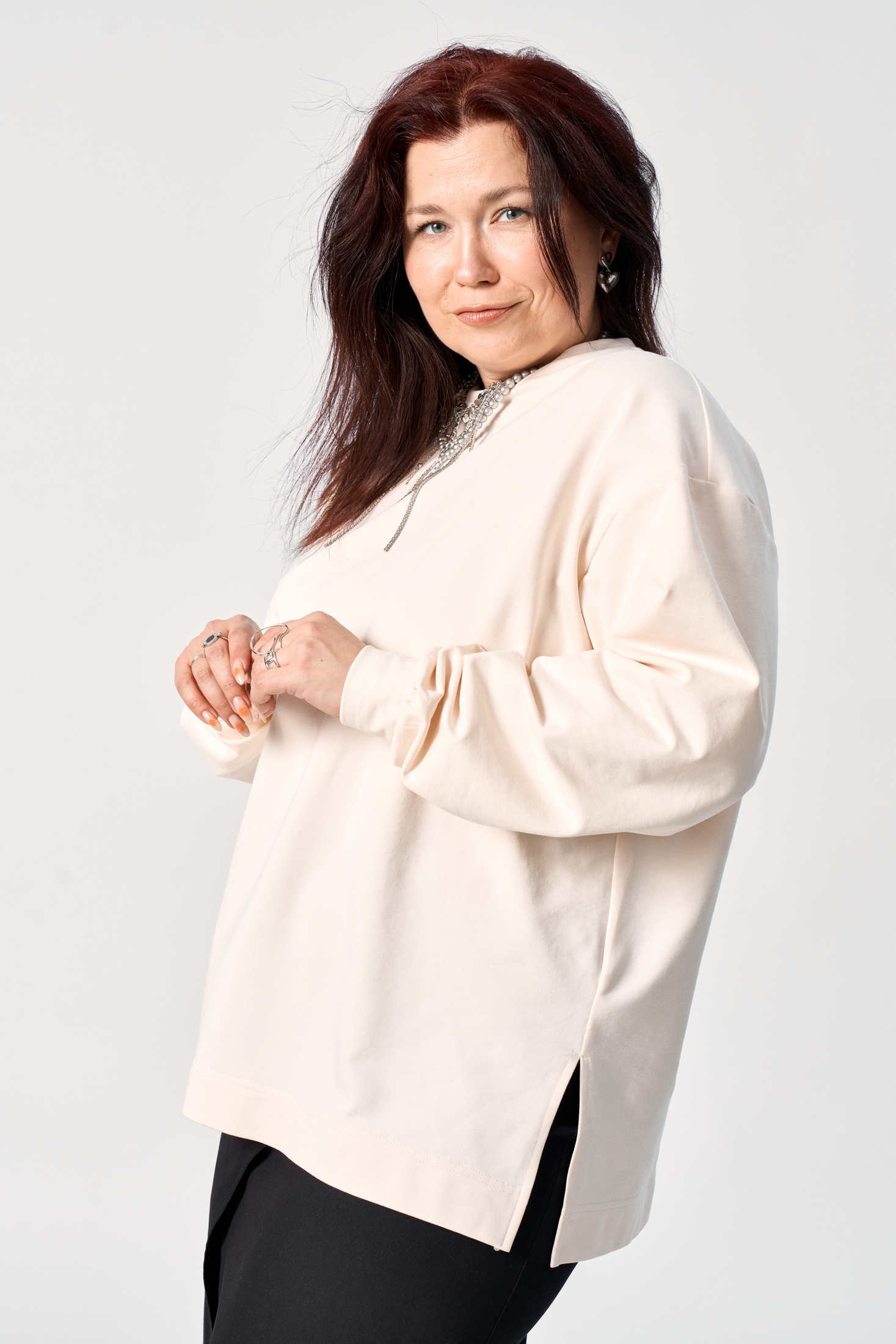 Это исключительное сочетание стиля и комфорта. Женский свитшот очень свободного объема, прямого силуэта,