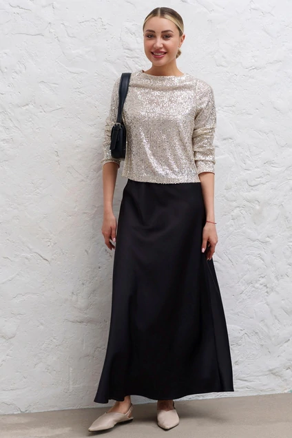 Этот укороченный джемпер, украшенный сверкающими пайетками, станет настоящим украшением вашего гардероба. Прямой силуэт идеально подойдет для любого типа фигуры, а свободный длинный рукав обеспечит комфорт и легкость движения. Округлый вырез горловины подчеркнет вашу женственность и нежность, добавляя изысканности вашему образу. Создавайте неповторимые и яркие образы с этим блестящим джемпером, сочетая его с любимыми предметами гардероба, и всегда выглядите стильно и модно! Подкладка 92% полиэстер, 8% спандекс