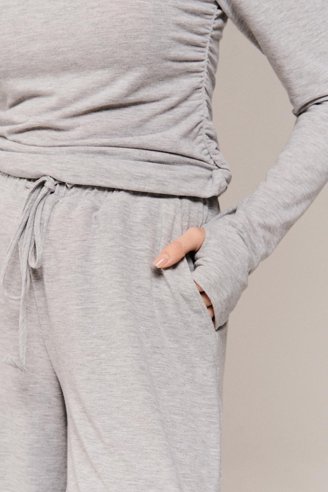 Джемпер молодежный из трикотажного полотна прилегающего силуэта,без застежки.с удлиненным рукавом рубашечного типа и с прорезями для пальца.