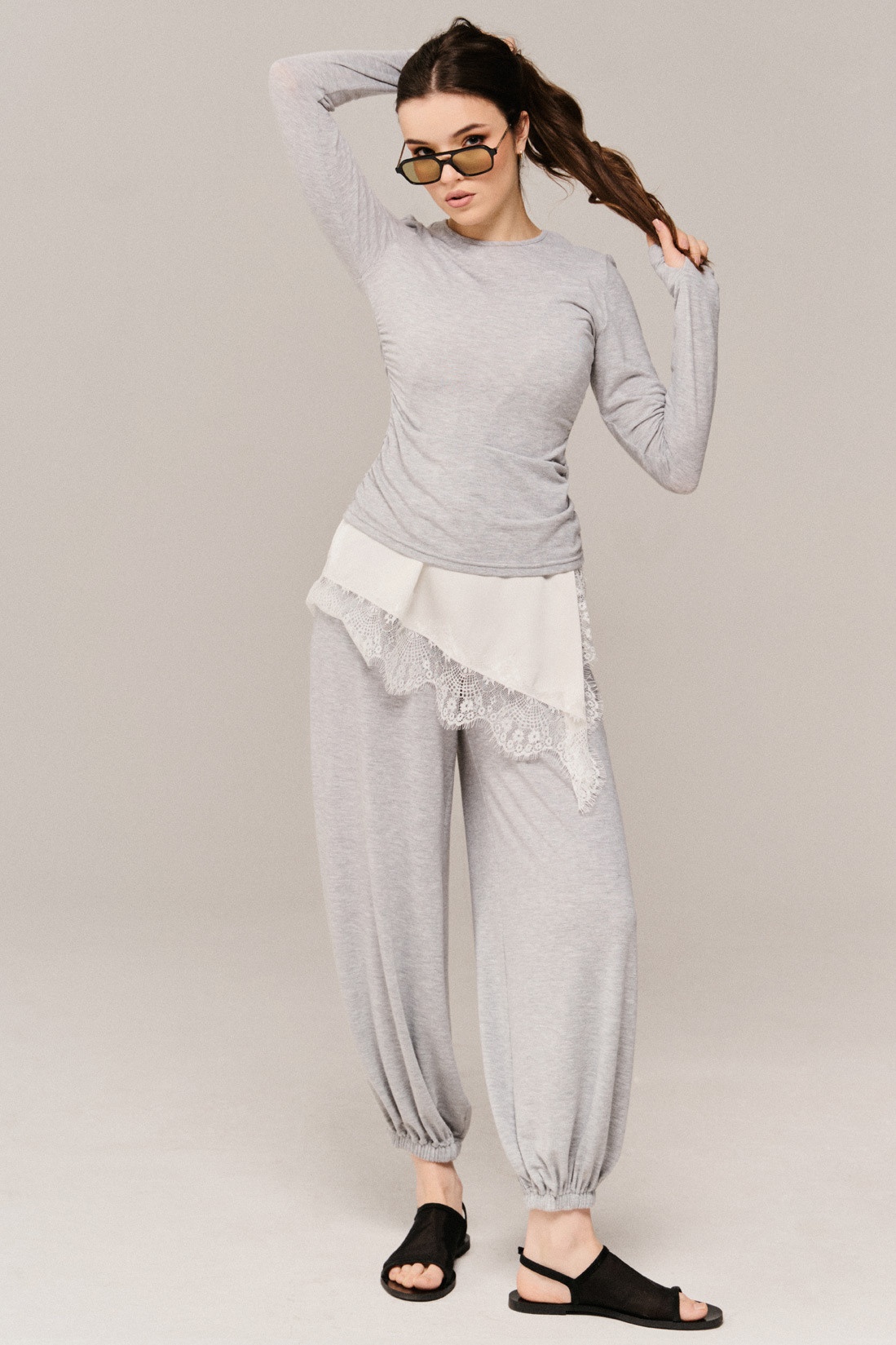 Перед и спинка со стяжками по боковым швам и драпировкой.