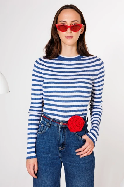 Универсальный джемпер из тонкой хлопковой пряжи. Он идеально прилегает к телу, позволяя носить его в прохладные дни как базовый слой с жакетами, кардиганами или пальто. Такая пряжа мягко греет и совсем не колется, а благодаря обработке волокон специальным составом джемпер долго не потеряет форму и не сядет при стирке. Благодаря полосатой расцветке - любой образ станет интереснее. Длина - 58 см.