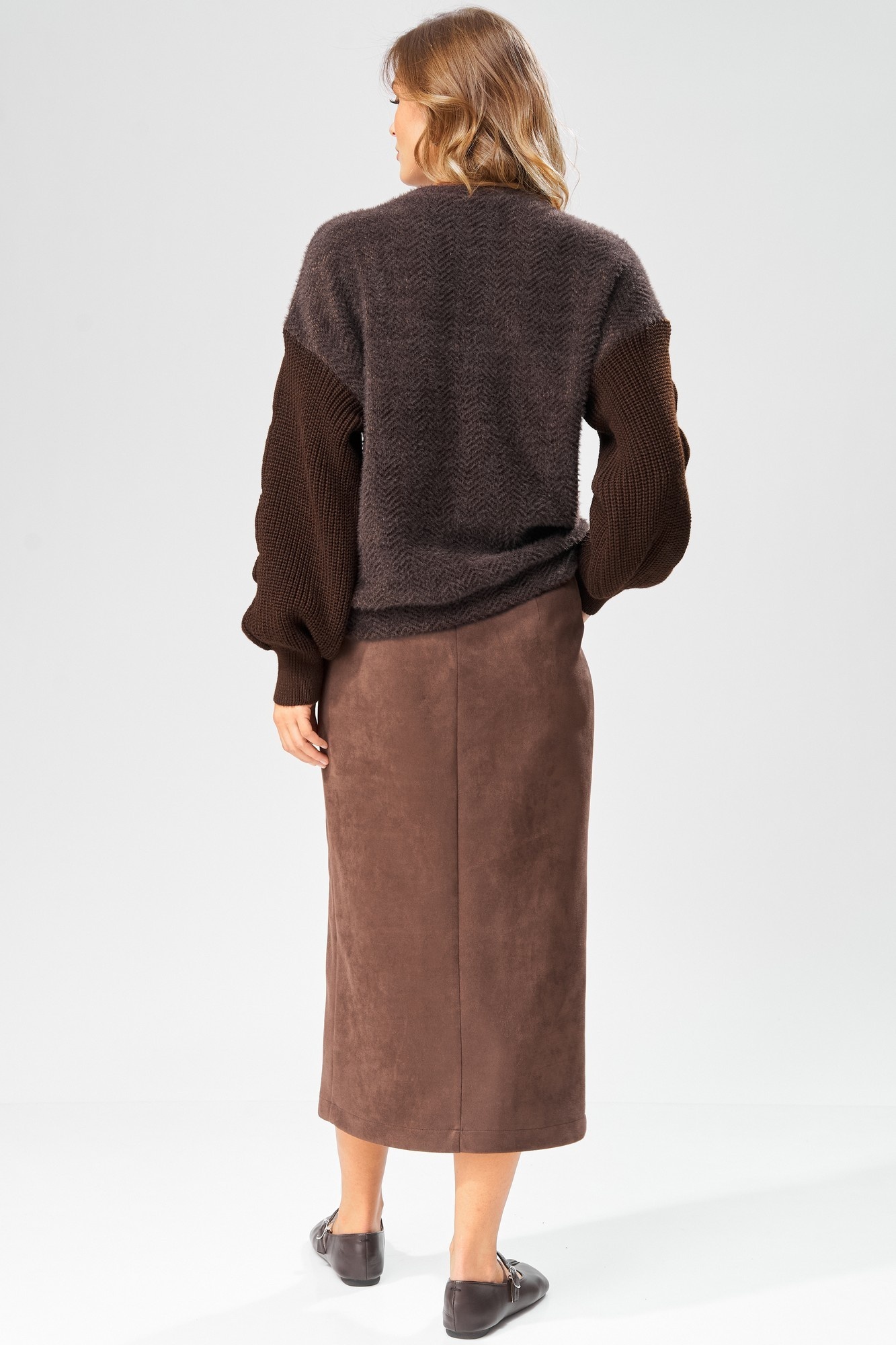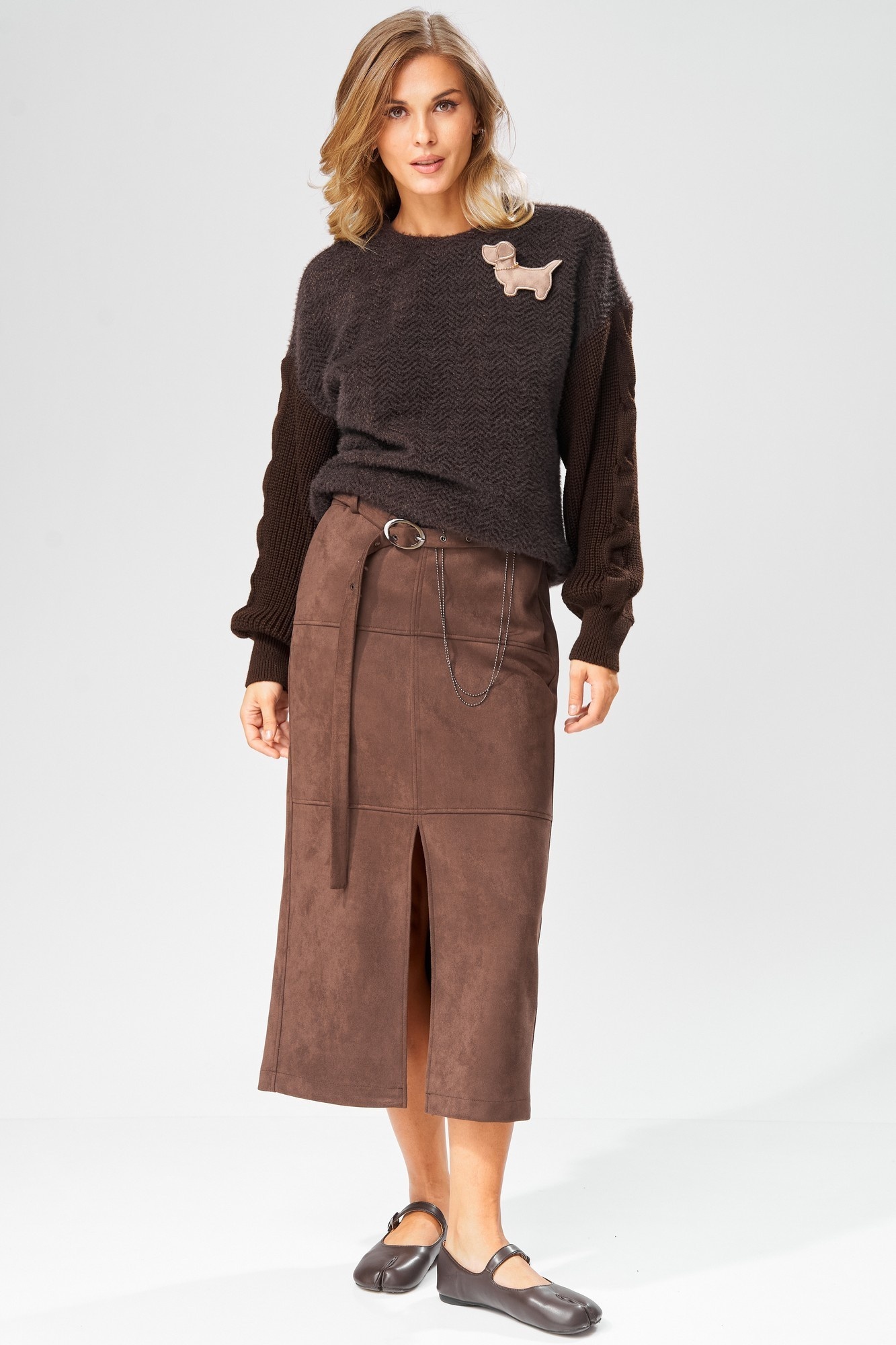 Уютный оригинальный джемпер для повседневного использования. Образ на фото с нашей юбкой из экозамши L-453-2.