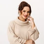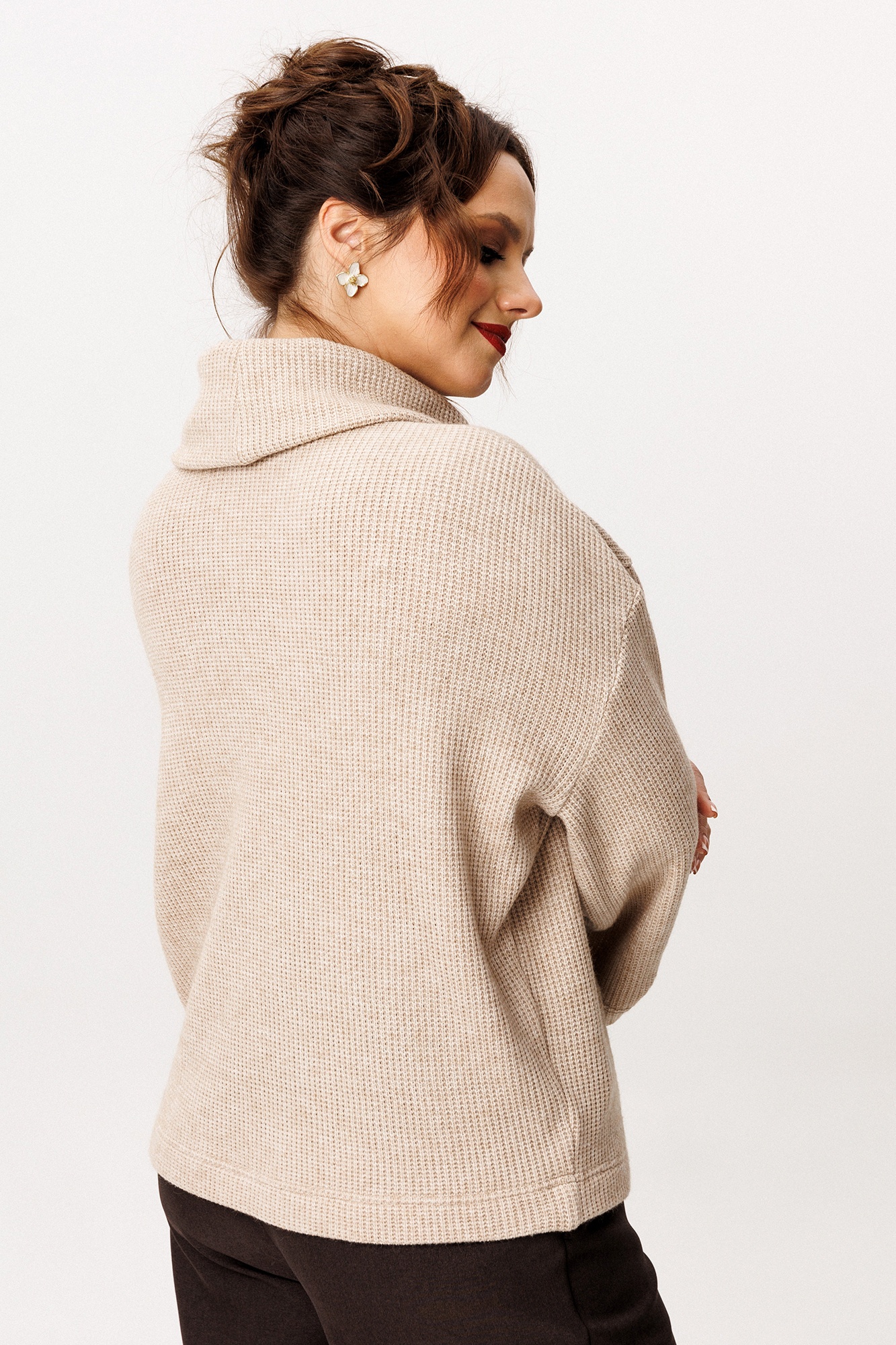 Элегантный джемпер бежевого цвета, выполненный из вязаного трикотажа, который идеально подойдет для создания уютного и стильного образа. Дизайн изделия включает в себя модный воротник-хомут и спущенную линию плеч, добавляющую современный акцент. Длинные рукава дополнены патами на пуговицы, что придает изысканный вид. Длина по спинке составляет 60 см, обеспечивая отличное покрытие и комфорт. Этот джемпер будет идеальным выбором для холодных дней, добавляя тепло и шарм вашему повседневному или офисному гардеробу.