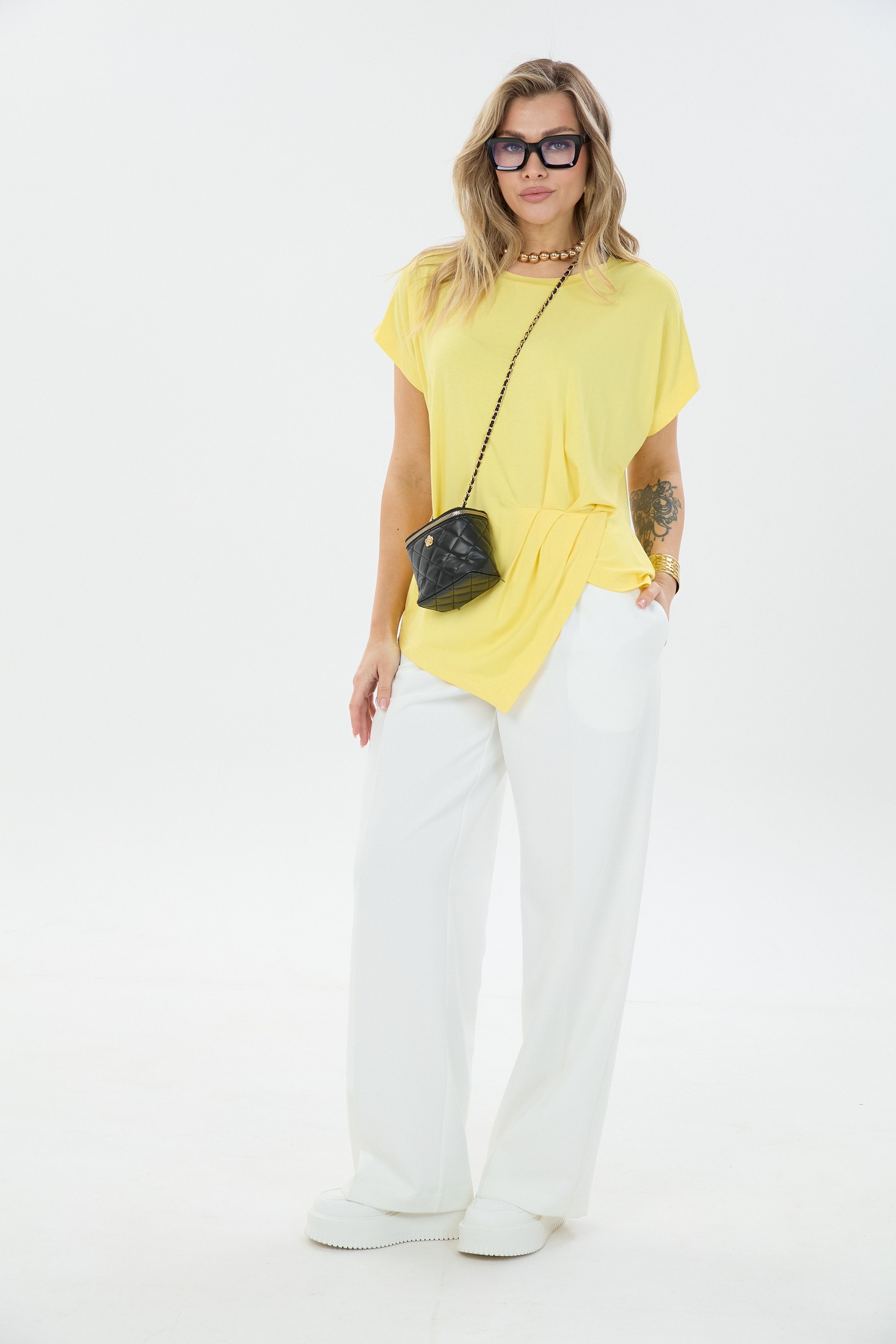 Джемпер М402 желтый LM (Лаборатория моды) представляет собой идеальный элемент вашего гардероба. Коллекция бренда Лаборатория моды предлагает лёгкий и стильный джемпер. Изготовленный из мягкой вискозы с добавлением эластана, он обладает приятной текстурой и легкостью. Свободный силуэт и оригинальный крой делают его подходящим для любого повседневного образа, а короткие цельнокроеные рукава добавляют комфорта. Ассиметричный низ придает модели модный акцент. Яркий желтый цвет прекрасно сочетается с любыми элементами одежды, делая ваш образ свежим и летним. Джемпер М402 отлично подходит для теплого сезона и может стать основой вашего гардероба.
