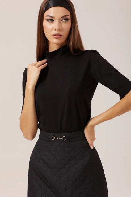 Джемпер прилегающего силуэта из трикотажного полотна. Горловина-стойка. Рукав втачной укороченный. Длина изделия: (44-48р - 56см)(50-54р – 59см)(56-60р - 62см)
