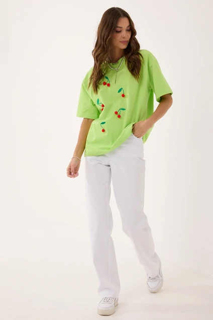 Джемпер женский свободного силуэта из комфортного трикотажного полотна, длиной до линии бедер. Горловина округлая. Рукав со спущенной линией плеча длиной до локтя. По переду дизайнерская вышивка с пришивными объёмными декоративными помпонами. Длина изделия (в 44 – 48 р - 70 см.), (в 50 -54 р. - 71,5 см.), (в 56 – 60 р. – 73см.)