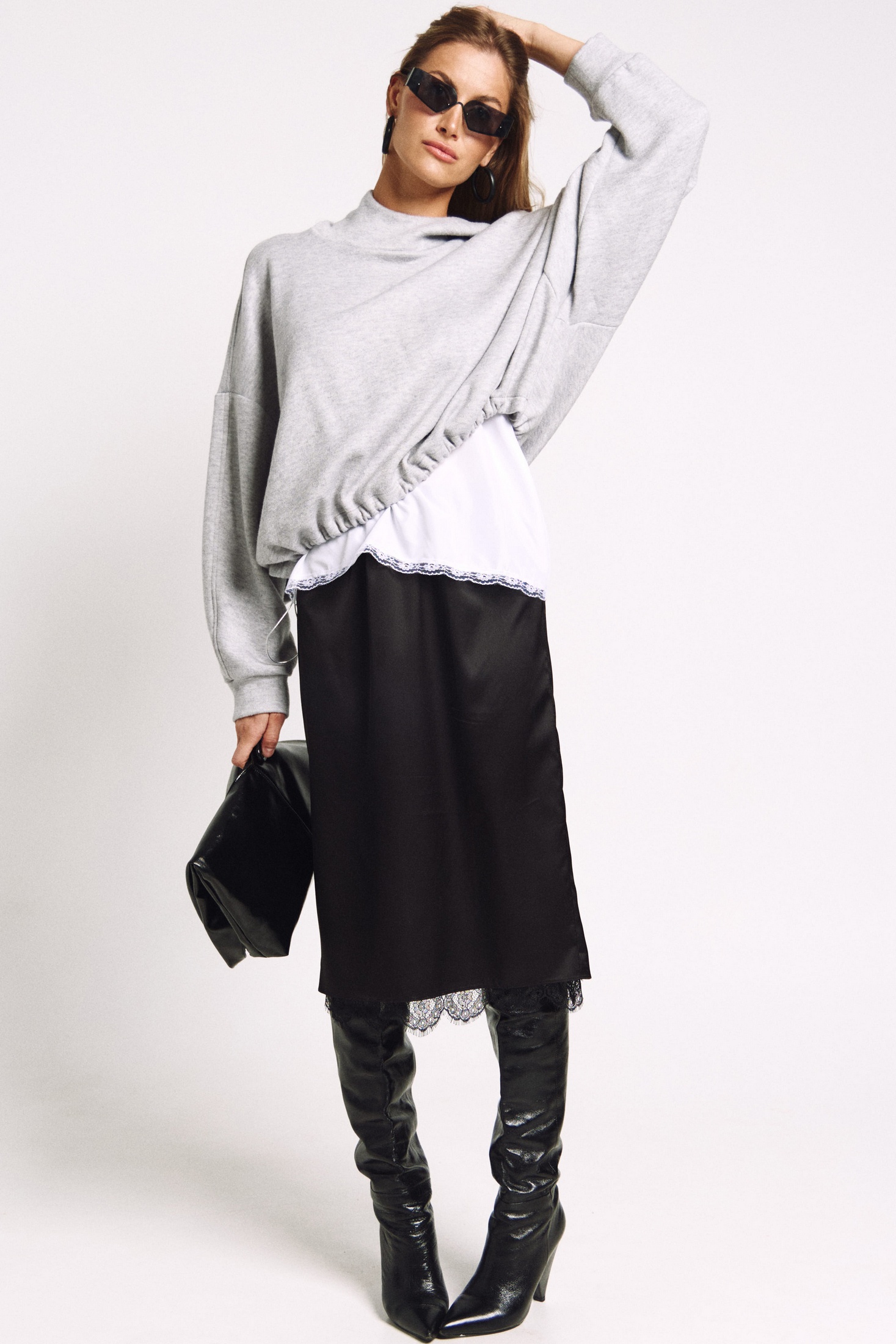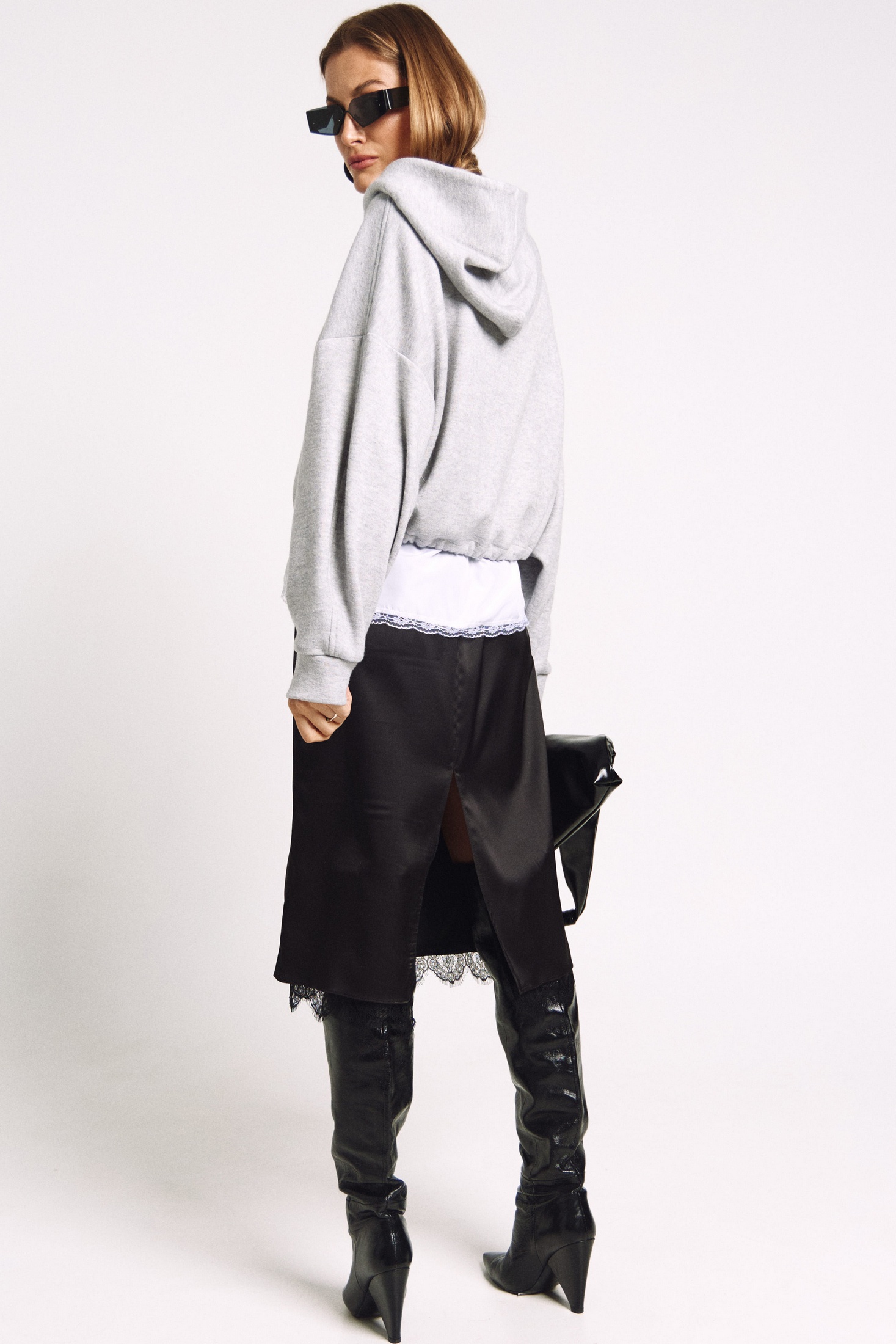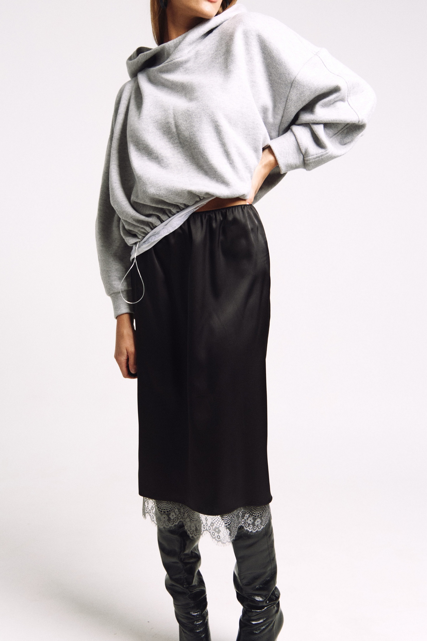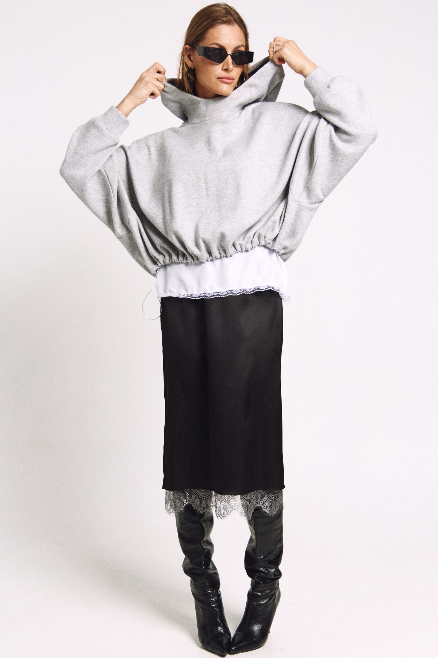 Худи большого объема с необычным капюшоном-стокой. Ширина низа худи регулируется резинками.