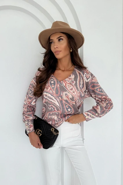 Женский джемпер Nika.pl. Мягкий трикотаж из акрила приятен к телу и дарит ощущение комфорта. Свободный крой с заниженной линией плеча подойдет для фигуры любого типа. Модель дополнена V-образным вырезом горловины и длинными рукавами. Рукава имеют длинную манжету с декоративными пуговицами. По низу резинка, что обеспечит хорошую посадку на любую фигуру.