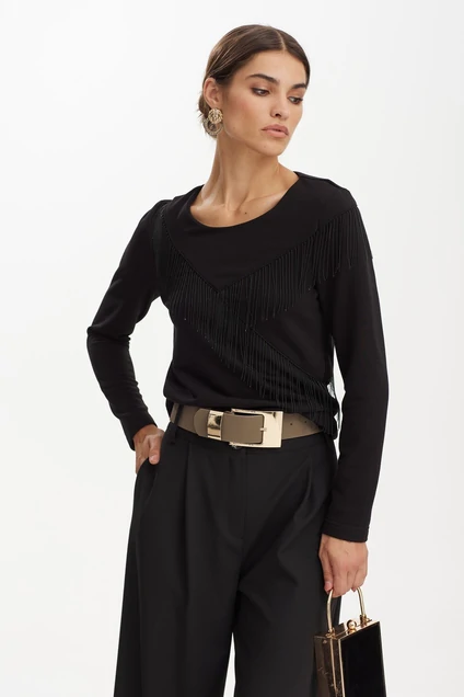 Стильный мягкий джемпер из вязаного трикотажного полотна. Джемперу придаёт оригинальности декорированные ассиметричные рельефы, в которые вставлена декоративная тесьма