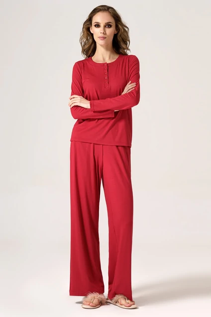 Джемпер из висозного трикотажного полотна. Джемпер с круглым вырезом горловины, с длинными рукавами. По переду небольшая декоративная застежка на петли и пуговицы. Отличный вариант для домашнего отдыха.