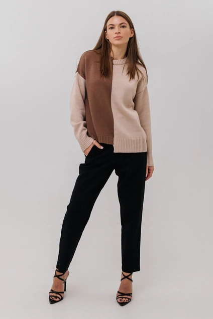 Двухцветный классический базовый джемпер с длинным рукавом. Выполнен из высококачественной, мягкой и приятной к телу шерстяной пряжи. Кроме двухцветности, у джемпера есть еще две особенности : разноуровневая горловина и разноуровневый низ изделия. Джемпер изготовлен специально для любителей свободных и легких вещей. Является базовой частью гардероба. Отлично сочетается с джинсами, брюками, юбкой и с любым типом обуви. Прекрасен на любой сезон, для работы, офиса, торжественного случая и повседневной носки. Благодаря своему составу изделие сохранит свою форму спустя множество стирок и прослужит вам не один сезон. Важная информация! Фото товара сделано при искусственном освещении студии. При естественном освещении цвета могут иметь другие оттенки. Сушите изделие горизонтально, разложив на полу или горизонтальной поверхности.