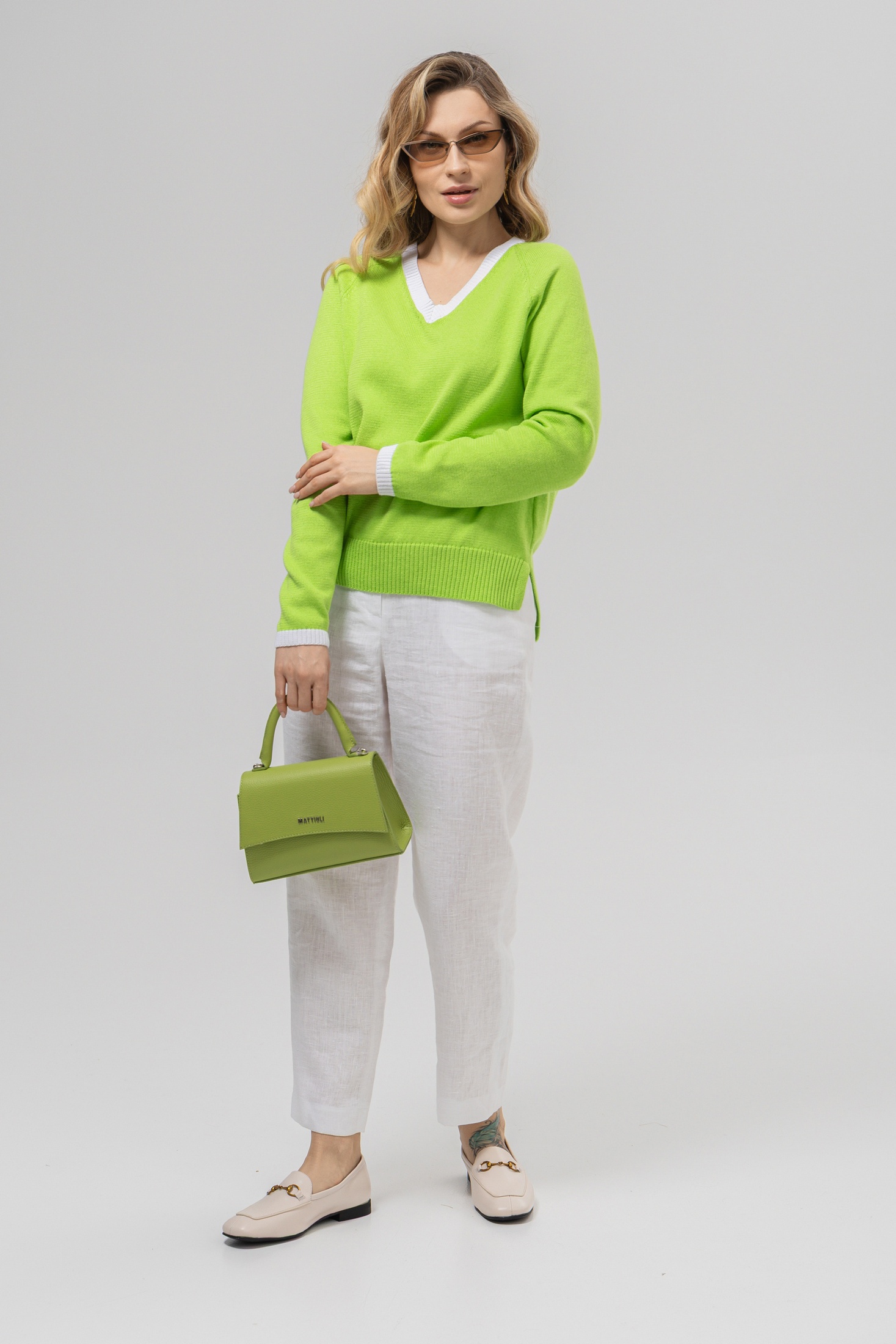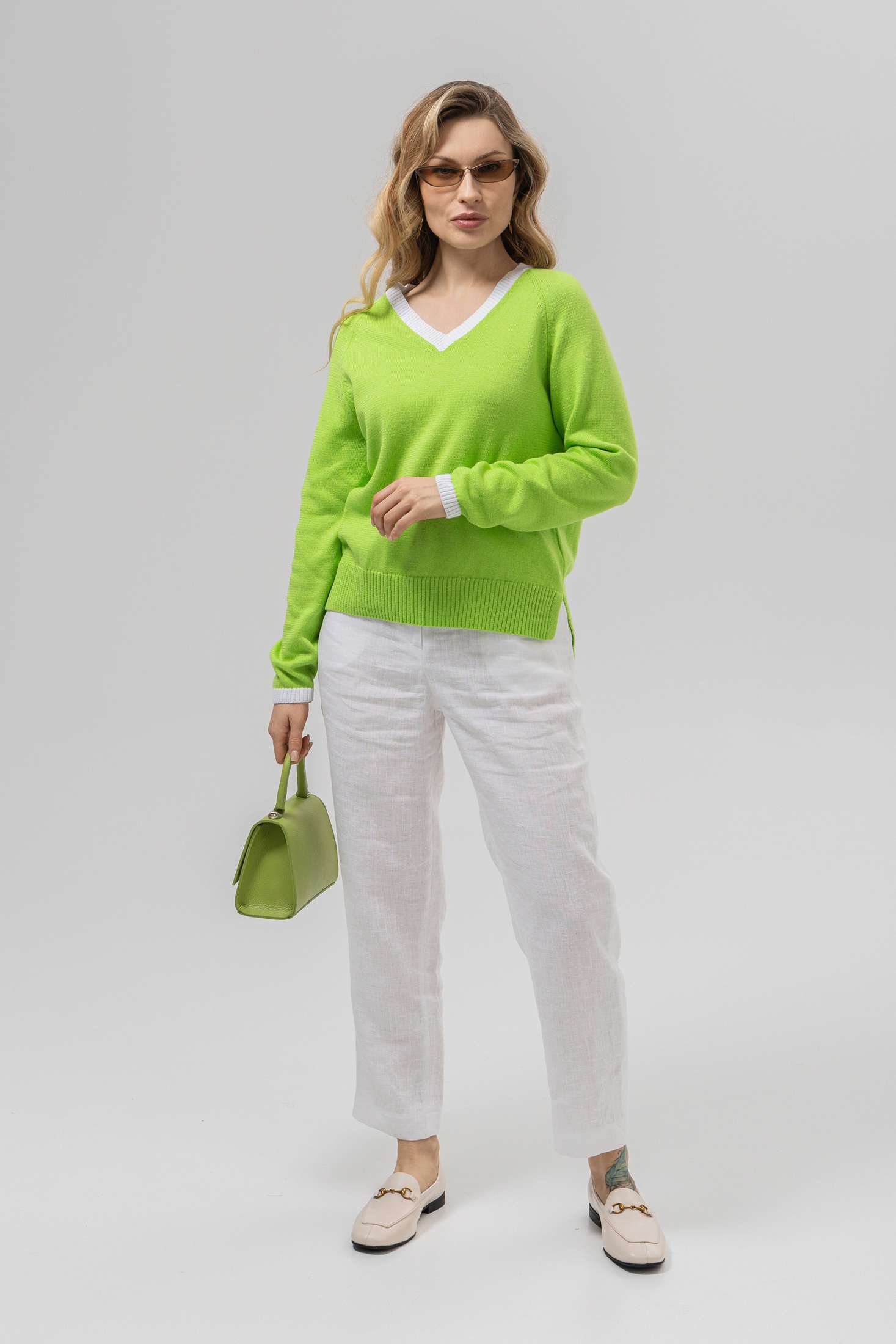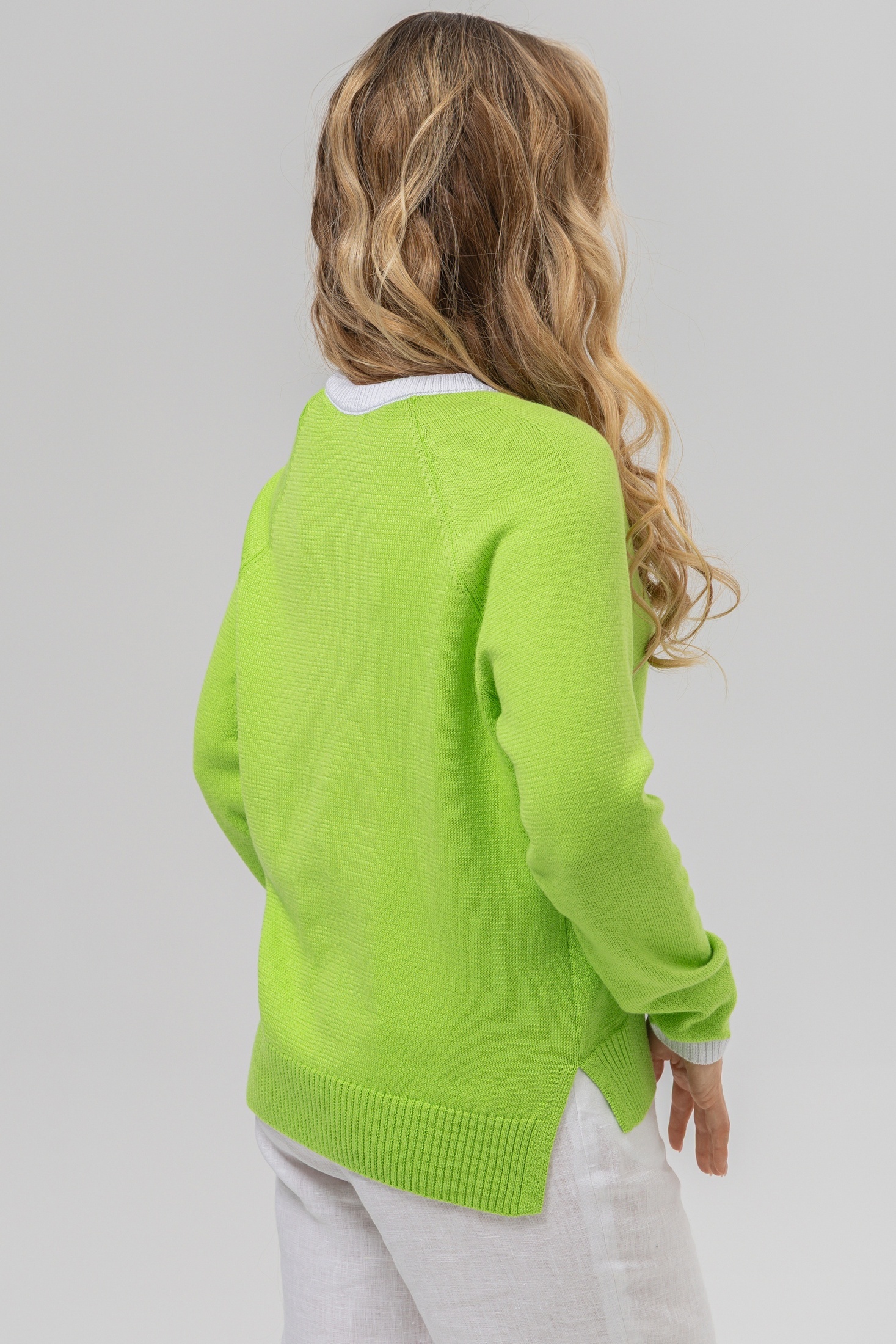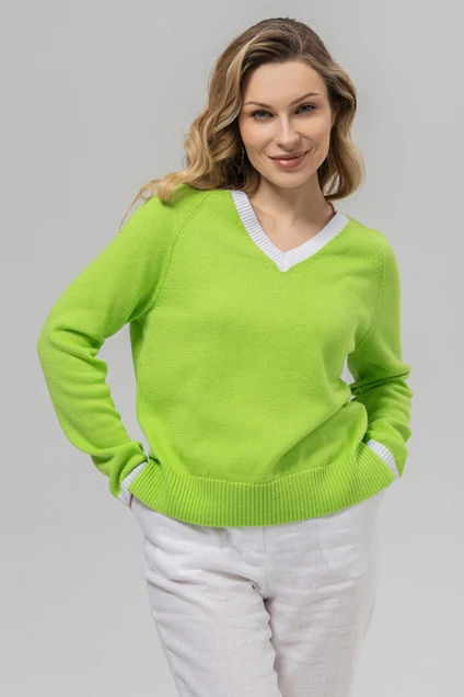 Джемпер РВ0157-ХЛ2 салатовый + белый от Romgil сочетает в себе стиль и комфорт. Изготовленный из мягкого трикотажа с хлопком и полиакрилом, он обеспечивает приятные тактильные ощущения. V-образный вырез с белой отделкой добавляет свежести и делает его универсальным дополнением гардероба. Коллекция бренда Romgil отлично подходит для повседневного ношения и деловых встреч. Свободный крой и длинные рукава обеспечивают комфорт и свободу движений, а насыщенный салатовый цвет освежит ваш образ. Идеален для весенне-осеннего сезона и легко сочетается с другими элементами одежды, такими как брюки, юбки или джинсы.
