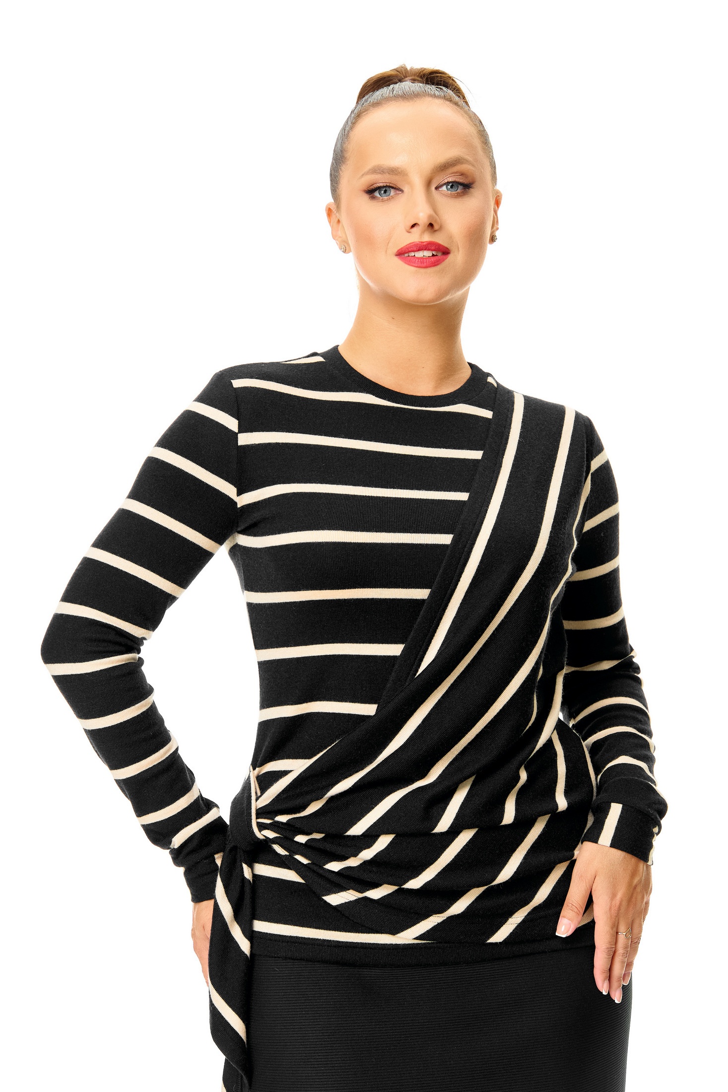 Джемпер из уютного мягкого трикотажа ниже талии , полуприлегающего силуэта, с деталью-драпировкой по переду.